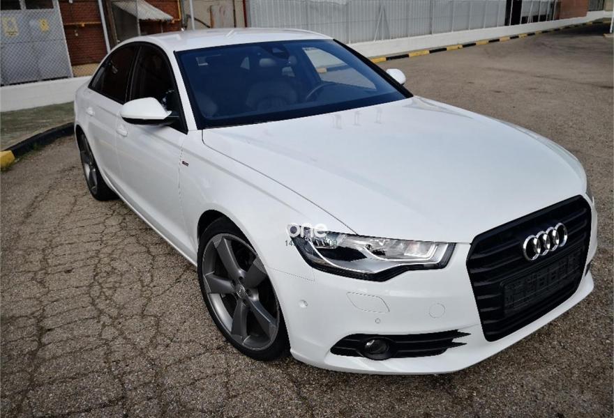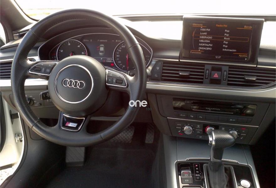 AUDI A6, Diesel, año 2013, 129000 kilómetros, color Blanco metalizado, precio 24900€. Sistema de aviso de límite de velocidad por reconocimiento de señales,Paquete Comfort,Asistente de aparcamiento park assist,Alfombrillas en colores especiales Audi exclusive,Apoyabrazos central delantero,Asientos calefactados delanteros,Tapicería en Alcantara perforada/cuero conemblemas S line en asientos delanteros,Tapicería en cuero Milano,Paquete de cuero,MMI navegación plus con MMI Touch,MMI radio plus,Receptor TV,Sistema de sonido BOSE Surround,Teléfono Audi Bluetooth GSM,Teléfono Audi Bluetooth GSM online con teléfono en el reposabrazos central delantero,Climatizador automátco de cuatro zonas,Control de velocidad de crucero (Tempomat),Faros de Xenon plus,Instalación básica manos libres (Bluetooth) para teléfono móvil,MMI Navigation,Molduras de entrada al vehículo S line,Paquete exterior S line,Paquete portaobjetos,Paquete técnico y navegación,Preinstalación de teléfono móvil con kit manos libres (Bluetooth),Pintura metalizada,Suspensión deportiva S line,Cámara de visión trasera,Audi parking system plus,Asientos delanteros deportivos,Reposabrazos de las puertas en cuero,Volante deportivo de cuero multifuncional de 3 radios,Sistema de alarma antirrobo,Volante en cuero Audi exclusive,Volante y pomo en cuero Audi exclusive,Tren de rodaje deportivo. VOLANTE MULTIFUNCION SLINE , ESPEJOS DELANTERO ANTIDESLUMBRANTE , RADIO CD , ASIENTOS DELANTEROS CALEFACTABLES, NAVEGACION PLUS , TV, DVD, ORDENADOR DE ABORDO , CLIMATIZACION , ARRANQUE STAR STOP, SENSOR DE LUCES , SENSOR DE LLUVIA ,, TEMPOMAT , SENSOR DE APARCAMIENTO DELANTERO Y TRASERO CON CAMARAS, VOLANTE DEPORTIVO, LLANTAS, LAVAFAROS REGULACION AUTOMATICA DE LUCES,