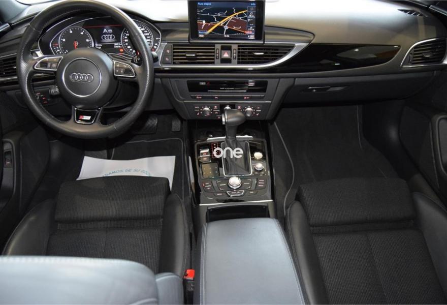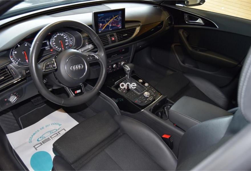 AUDI A6, Diesel, año 2013, 110000 kilómetros, color Gris / Plata metalizado, precio 29990€. Cambio automático multitronic, paquete S-Line interior y exterior, climatizador automático, sistema de navegación Plus MMI, asientos delanteros deportivos y calefactados, asientos delanteros con regulación eléctrica y memoria conductor, volante deportivo multifunción en cuero, faros con tecnología LED, equipo sonido Premium, teléfono Bluetooth, control de velocidad con control de distancia, llantas aluminio 20” Rotor, reposa brazos central, espejos exteriores abatibles eléctricos y térmicos, espejo interior antideslumbrante, sensores aparcamiento delanteros y traseros, sensor luz y lluvia, anclajes ISOFIX en plazas traseras, lector tarjetas SD, sistema ayuda en salida Auto Hold, sistema ahorro combustible Start/Stop, etc, etc.
