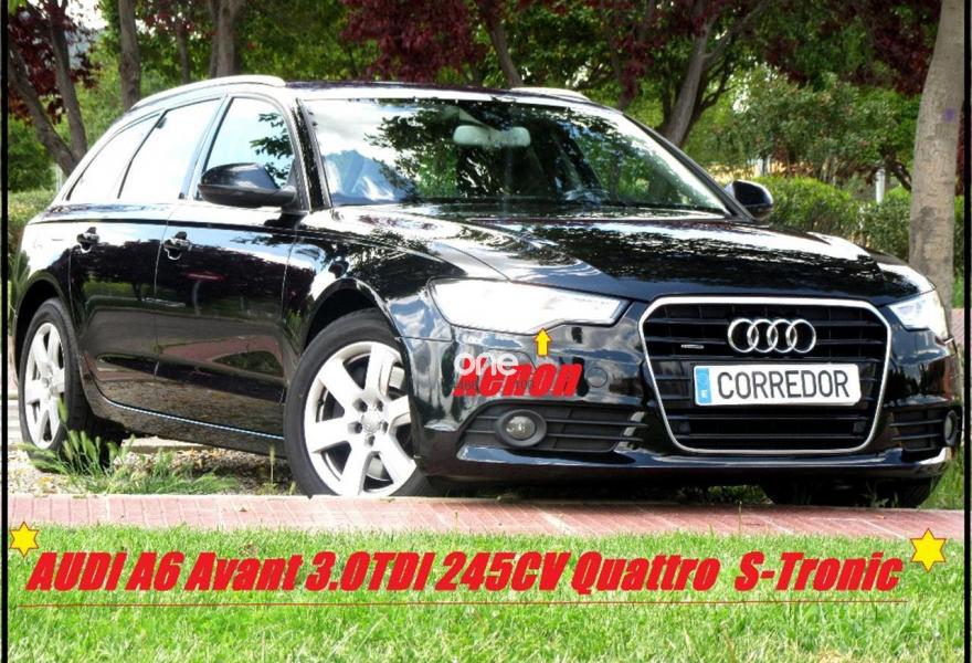 AUDI A6, Diesel, año 2012, 125000 kilómetros, color Negro (atracita) metalizado, precio 19900€. !Numero de contacto fuera de horario comercial! tlf:674-089-309 Con posibilidad de recoger su coche como parte de pago ¡ Acepto cambios¡. Automóviles el Corredor Te ofrece una Preciosa y Lujosa AVANT Audi A6 Modelo Restyling 3.0TDI Quattro Motion DPF De 245cv Con 8 Velocidades S-Tronic. VEHICULO Con libro de Mantenimiento OFICIAL. En un estado extraordinario. IMPECABLE MENTE, Muy cuidada. Extras: Boton START-STOP, Faros de Led, Sistema de NAVEGADOR, Freno de mano eléctrico, doble clima DIGITAL ,sensor de Aparcamiento, Avisador de angulo muerto,asientos calefactables delantero y trasero, luces y lluvia.. Entrego 3 juegos de llaves. Acepto prueba mecánica para verificar su fantástico estado. Te podrías llevar el vehículo al instante incluso sabados, domingos y efectivos. Vehículo Sin Garantía para uso Profesional. Si eres particular pregunten condiciones de garantía. Iva incluido. Este anuncio no es vinculante y puede contener errores, se muestra a titulo informativo y no contractual.