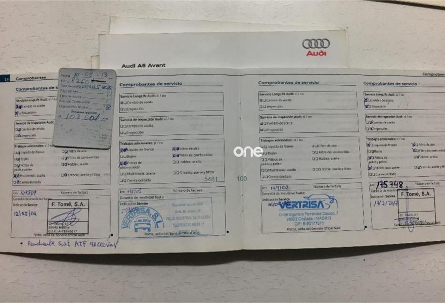 AUDI A6, Diesel, año 2009, 200000 kilómetros, color Blanco metalizado, precio 12000€. Alfombrilla reversible para el maletero con lados velours/goma,Apoyabrazos central delantero,Apertura para saco portaesquís, con saco,Asientos calefactables delanteros,Inserciones en aluminio Trigón,Tapicería en cuero Valcona,MMI navegación,Cuero Milano Marrón Amaretto,Faros de xenón plus,Lavafaros. **ATENDEMOS DÍAS FESTIVOS PREVIA CITA TELEFÓNICA**