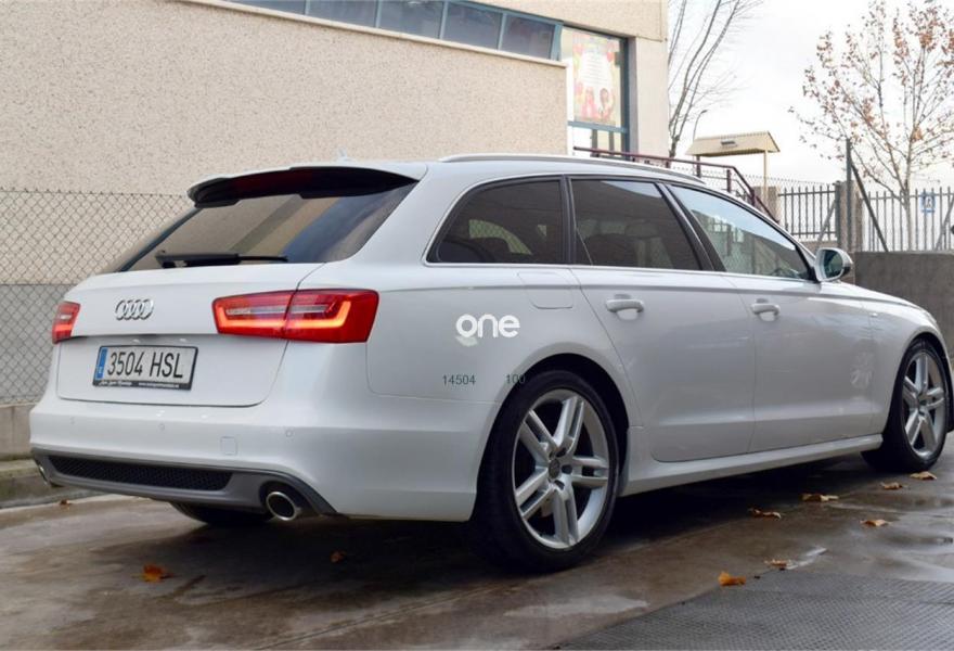 AUDI A6, Diesel, año 2013, 142200 kilómetros, color Blanco (ibis) , precio 30900€. Tapicería en Alcantara perforada/cuero conemblemas S line en asientos delanteros,Audi music interface,Mando a distancia (HomeLink),MMI navegación plus con MMI Touch,Volante deportivo de cuero multifuncional de 3 radios,Molduras de entrada al vehículo S line,Paquete deportivo S line,Paquete exterior S line,Paquete portaobjetos,Paquete técnico y navegación,Techo panorámico eléctrico,Blanco Ibis,Cristales tintados oscuros,Llantas de aleación 8,5Jx19 diseño de 15 brazos con neumáticos 255/40 R 19,Sin inscripción trasera de modelo y motor,Volante deportivo de cuero multifuncional de 3 radios con levas de cambio,Audi parking system plus. *Llévatelo por 29.900€, financiando un mínimo de 10.000€ a partir de 72 Meses. Vehículo Nacional de un único propietario. Libro de revisiones con última revisión en Concesionario Oficial AUDI (Audi Center BCN) el 12/12/2016 a los 118.330Kms. En el precio se incluye: IVA (Deducible), Transferencia y Garantía de un año // Abierto 365 días - Financiación sin entrada 426€/Mes - Web: autosportmor//