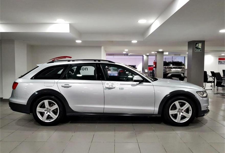 AUDI A6 allroad quattro, Diesel, año 2012, 150000 kilómetros, color Gris / Plata metalizado, precio 26900€. Audi side assist con Audi pre sense rear y Audi active lane assist,Paquete técnico y navegación,Paquete de asistentes incluido Audi pre sense plus,Alfombrilla reversible de maletero,Asientos delanteros deportivos,Audi side assist con Audi pre sense rear,Tapicería en Alcantara/cuero,Audi music interface,Cargador de 6 DVD / CD en la guantera,MMI navegación plus con MMI Touch,Teléfono Audi Bluetooth GSM,Espejos retrovisores con función de memoria,Espejo interior antideslumbrante automático,Maletero con apertura y cierre eléctrico,MMI Navigation,Paquete portaobjetos,Preinstalación de teléfono móvil con kit manos libres (Bluetooth),Sistema de alarma antirrobo,Pintura metalizada,Volante deportivo de cuero multifuncional de 3 radios con levas de cambio,Audi active lane assist,Asistente de visión nocturna - Night vision,Audi parking system plus,Cámara de visión trasera. ¡¡El Audi más campero!!!