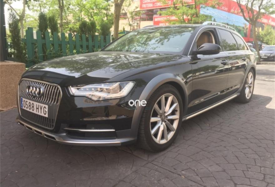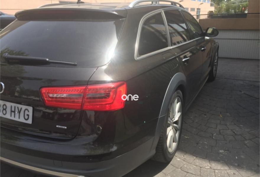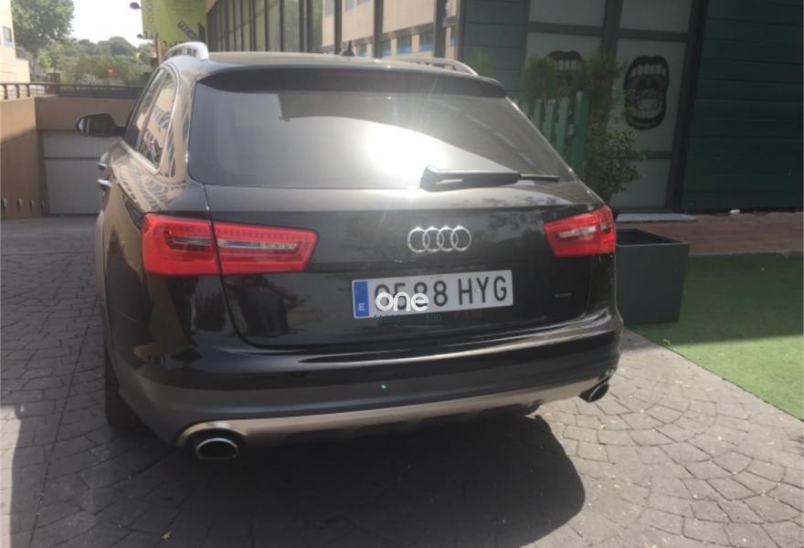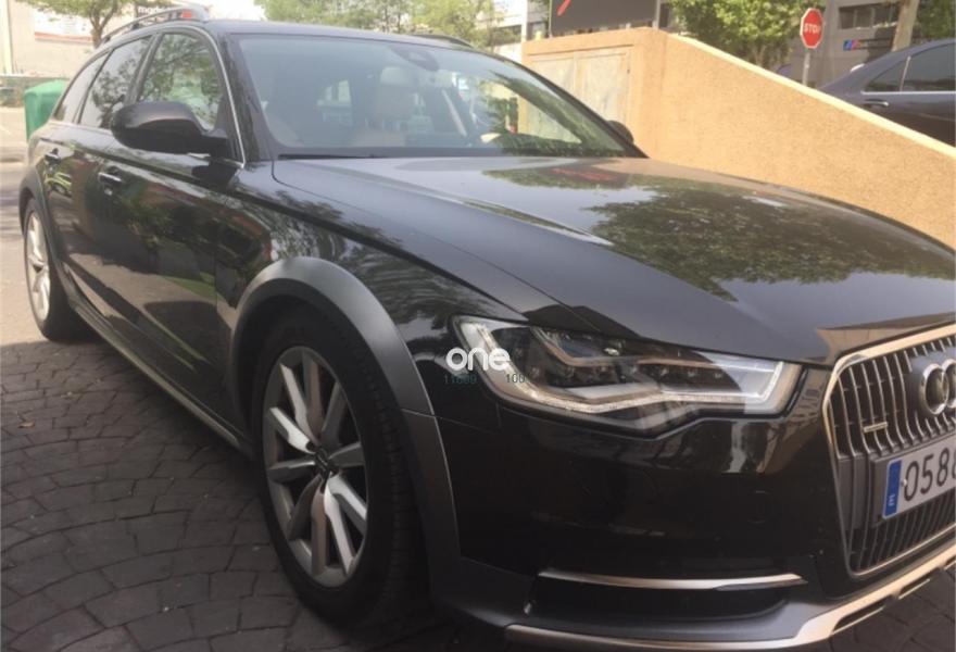 AUDI A6 allroad quattro, Diesel, año 2014, 118000 kilómetros, color Negro (Ebano) metalizado, precio 35900€. Audi side assist con Audi pre sense rear y Audi active lane assist,Paquete Comfort,quattro con diferencial trasero deportivo,Sistema de aviso de límite de velocidad por reconocimiento de señales,Paquete de asistentes incluido Audi pre sense plus,Asistente de aparcamiento park assist,Alfombrilla reversible de maletero,Alfombrillas delanteras y traseras,Asientos calefactados delanteros,Asientos delanteros deportivos,Inserciones en madera de fresno marrón natural ampliado,Moqueta del piso y alfombrillas en colores especiales Audi exclusive,Paquete de cuero Valcona Exclusive (paquete 1),Tapicería en cuero Valcona,Audi music interface,MMI navegación plus con MMI Touch,Sistema de sonido BOSE Surround,Teléfono Audi Bluetooth GSM,Acabado interior ampliado,Ajuste eléctrico del volante,Asientos delanteros eléctricos con función memoria para el conductor,Climatizador automátco de cuatro zonas,Cuero Valcona Beige Terciopelo/Costuras Grafito - Asientos Deportivos,Dirección dinámica,Espejos retrovisores exteriores plegables eléctricamente con función de memoria,Faros completos en tecnología LED,Iluminación de ambiente,Llave de confort,Luz adaptativa "adaptive light" con regulación continua del alcance de las luces,Maletero con apertura y cierre eléctrico,Set de fijación con guías en el maletero,Techo panorámico eléctrico,Sistema de alarma antirrobo,Capacidad del depósito de combustible ampliada a 75 litros,Cristal aislante/insonorizante con cristales tintados oscuros,Espejos retrovisores exteriores antideslumbrantes automáticos plegables eléctricamente y con función de memoria,Llantas de aleación 8,5Jx19 diseño de 10 brazos con neumáticos 255/45 R 19,Negro Habana (metalizado),Set de reparación de neumáticos,Sin inscripción trasera de modelo y motor,Head-up display,Volante deportivo de cuero multifuncional de 3 radios con levas de cambio calefactable,Audi active lane assist,Asistente de visión nocturna - Night vision,Cuatro cámaras de entorno. Vehículo de dirección,NACIONAL,revisiones en Audi.