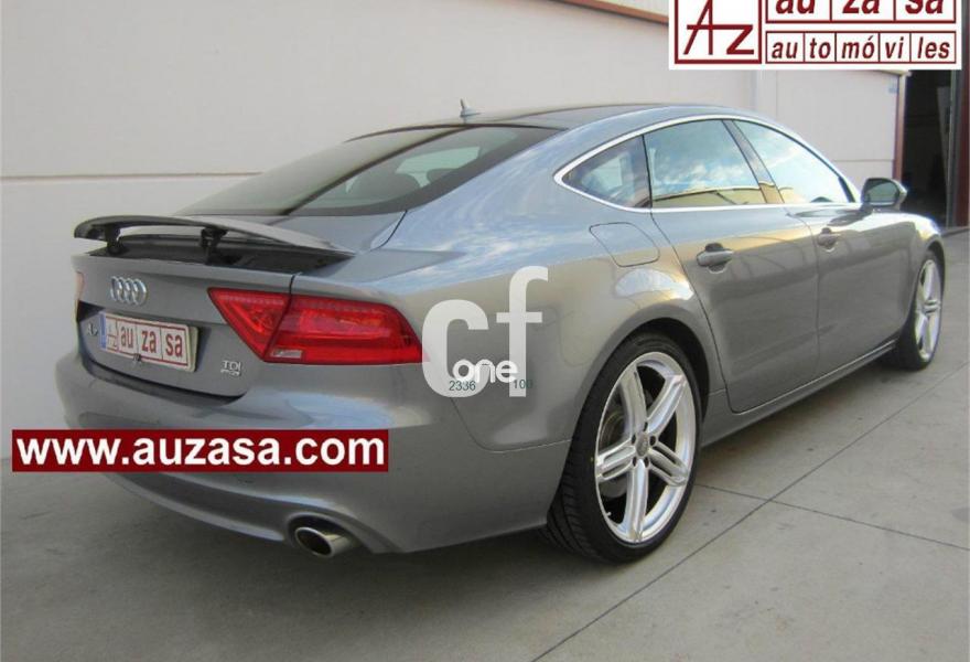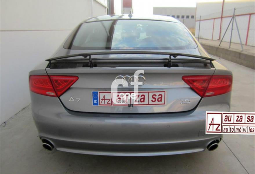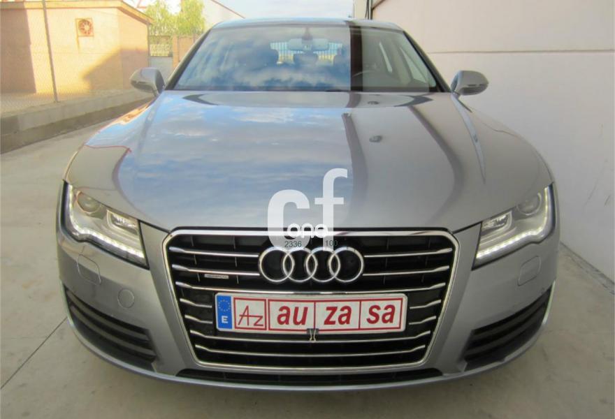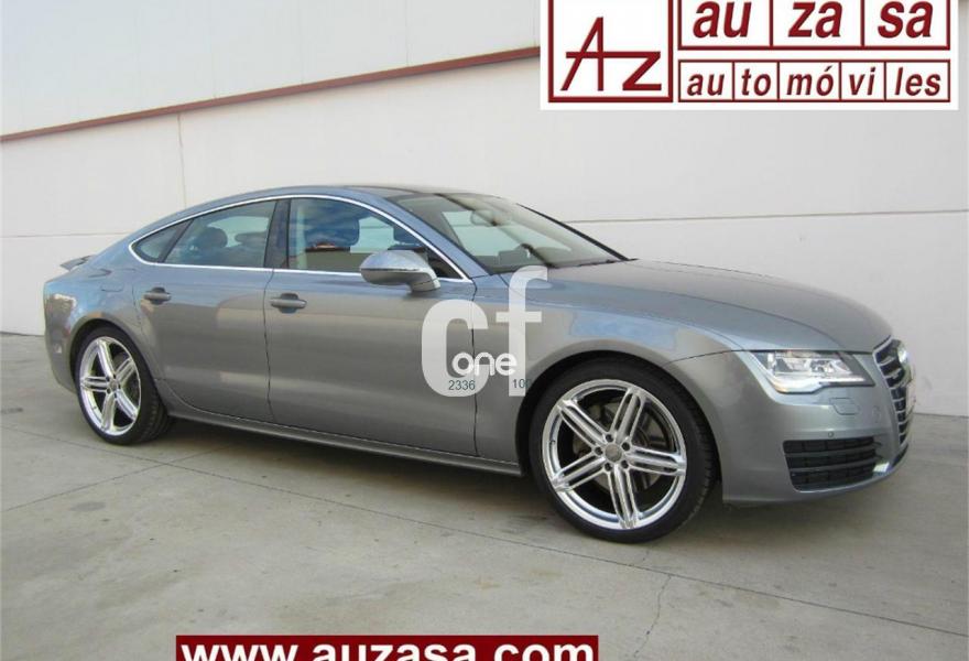 AUDI A7, Diesel, año 2011, 78000 kilómetros, color Gris / Plata metalizado, precio 32900€. Inserciones decorativas en aluminio mate especial Audi exclusive,Paquete de cuero,Tapicería en cuero Milano,Vehículo de 5 plazas,Cargador de 6 DVD/CD en la guantera,MMI navegación plus con MMI touch,Preinstalación de teléfono móvil con kit manos libres (Bluetooth),Radio Digital DAB,Climatizador automático de cuatro zonas,Iluminación de ambiente,Espejos retrovisores exteriores plegables eléctricamente con función memoria,Luz adaptativa "adaptive light" con regulación continua del alcance de las luces,Paquete deportivo S line,Paquete exterior S line,Paquete portaobjetos,Sistema de alarma antirrobo,Espejos retrovisores exteriores calefactables antideslumbrantes automáticamente plegables eléctricamente,Espejos retrovisores exteriores calefactables antideslumbrantes automáticamente, plegables eléctricamente y con función memoria,Llantas de aleación 9Jx20 diseño de 5 radios segmentados con neumáticos 265/35 R20 (Audi exclusive),Pintura metalizada,Suspensión neumática adaptativa,Volante deportivo de cuero multifuncional de tres radios con levas de cambio,Audi parking system plus,Fijaciones Isofix para el asiento del acompañante con interruptor para desconectar el airbag,Visión nocturna. EXCLUSIVO 5 PLAZAS -COMO NUEVO. Nacional.