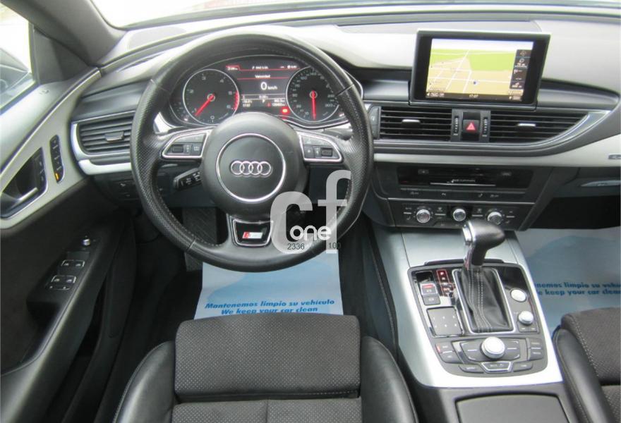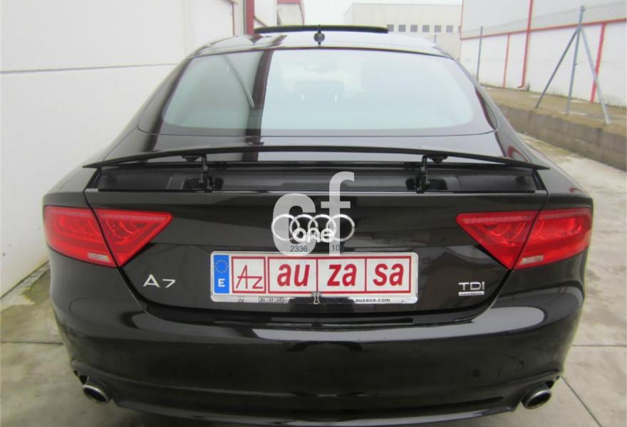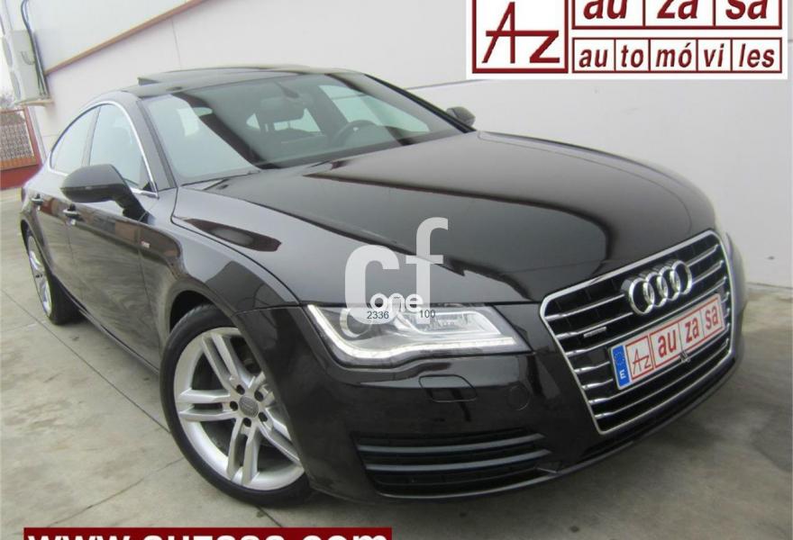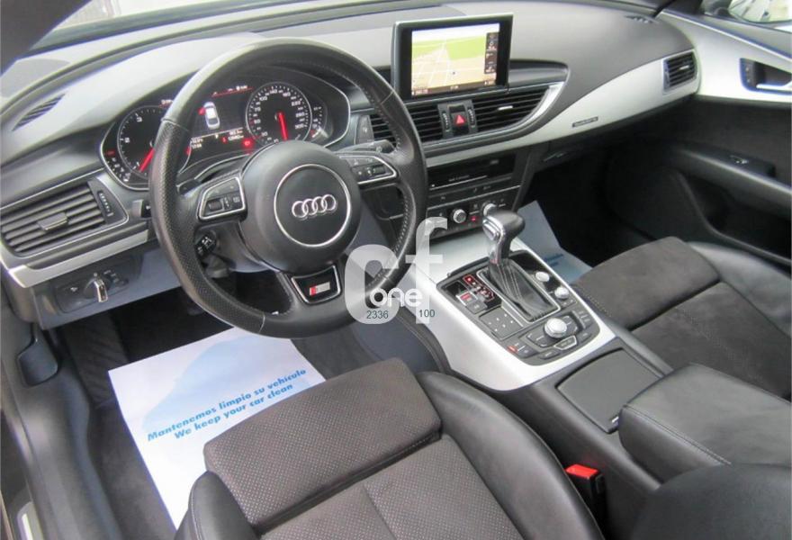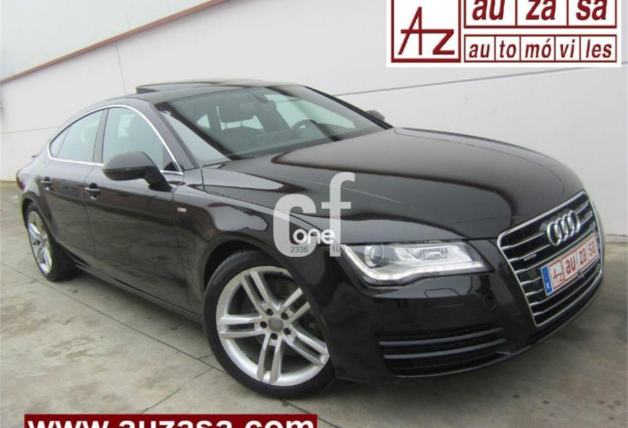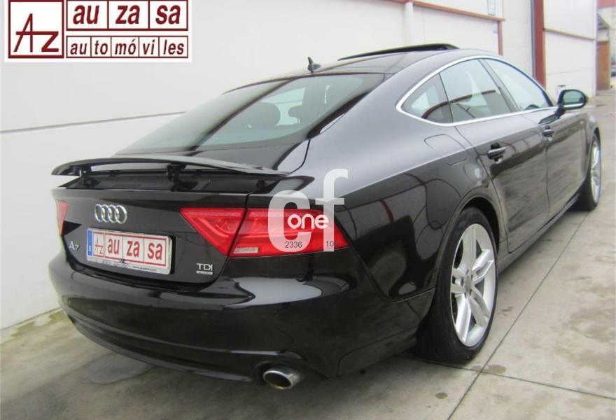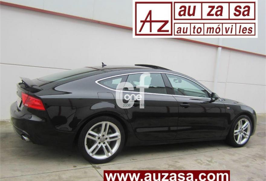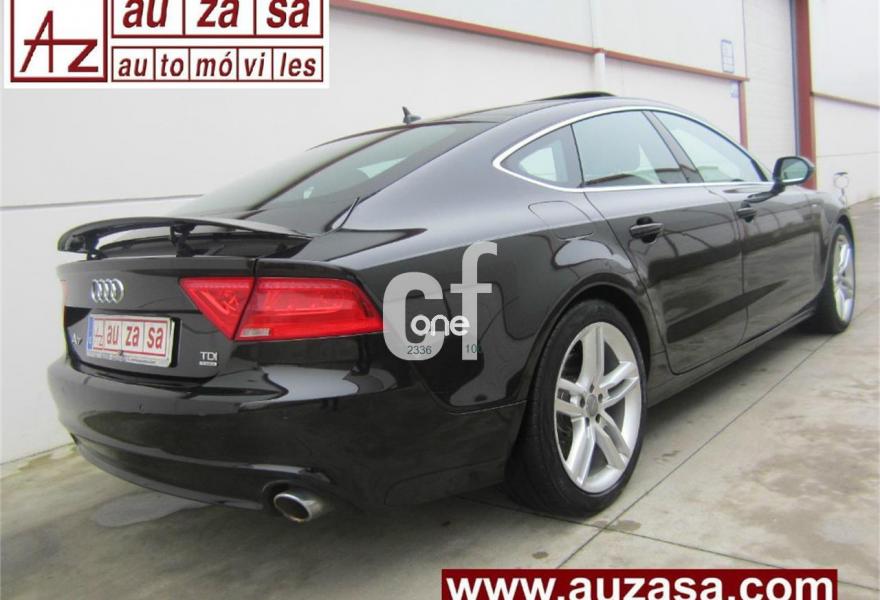 AUDI A7, Diesel, año 2012, 120000 kilómetros, color Negro metalizado, precio 30900€. Paquete técnico,Asientos delanteros calefactados,Asientos de confort con función memoria,Inserciones decorativas en aluminio mate especial Audi exclusive,Paquete de cuero,Reposabrazos de las puertas en cuero,Tapicería Alcantara perforada/piel con logo S line en asientos delanteros,Tapicería en cuero Valcona con logo S line en asientos delanteros,Vehículo de 5 plazas,Audi music interface,MMI navegación plus con MMI touch,Preinstalación de teléfono móvil con kit manos libres (Bluetooth),Asientos delanteros eléctricos con función memoria para el conductor,Cuero Valcona Negro - S line,Espejos retrovisores exteriores plegables eléctricamente con función memoria,Iluminación de ambiente,Paquete deportivo S line,Paquete exterior S line,Techo corredizo eléctrico de cristal,Sistema de alarma antirrobo,Depósito de combustible ampliado a 75 litros,Espejos retrovisores exteriores calefactables antideslumbrantes automáticamente plegables eléctricamente,Llantas de aleación 9Jx19 diseño de 5 radios dobles con neumáticos 255/40 R 19 (Audi exclusive),Pintura metalizada,Volante deportivo de cuero multifuncional de tres radios con levas de cambio,Audi parking system plus,Fijaciones Isofix para el asiento del acompañante con interruptor para desconectar el airbag. Procedente directamente de Concesión Oficial AUDI ESPAÑA. Nacional.
