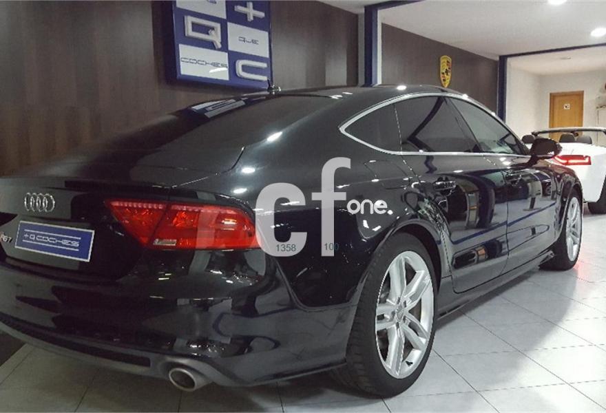AUDI A7, Diesel, año 2012, 95795 kilómetros, color Negro (HISTORIAL COMPLETO S LINE PLUS IVA DEDUCIBLE) , precio 35750€. Audi side assist con pre sense rear con Audi active lane assist,quattro con diferencial deportivo,Asientos delanteros calefactados,Audi side assist con pre sense rear,Inserciones decorativas en aluminio mate especial Audi exclusive,Paquete de cuero incluido tapa del airbag del volante,Paquete de piel y tapa de airbag Audi Exclusive,Reposabrazos de las puertas en cuero,Revestimiento interior del techo en tela negra,Audi music interface,MMI navegación plus con MMI touch,Preinstalación de teléfono móvil con kit manos libres (Bluetooth),Radio Digital DAB,Audi exclusive edition,Iluminación de ambiente,Interface para sistema de localización de vehículos (preinstalación),Llave de confort con apertura por control gestual,Luz adaptativa "adaptive light" con regulación continua del alcance de las luces,Paquete de estilo negro Audi exclusive,Paquete deportivo S line,Paquete exterior S line,Paquete portaobjetos,Sistema de alarma antirrobo,Preinstalación para Rear Seat Entertainment,Volante y pomo en cuero Audi exclusive,Depósito de combustible ampliado a 75 litros,Llantas de aleación 9Jx19 diseño de 5 radios dobles con neumáticos 255/40 R 19 (Audi exclusive),Sin inscripción trasera de modelo y motor,Suspensión deportiva S line,Tren de rodaje deportivo,Volante deportivo de cuero multifuncional de tres radios con levas de cambio,Audi active lane assist,Asistente de aparcamiento park assist,Audi parking system plus,Control de crucero adaptativo con pre sense front,Fijaciones Isofix para el asiento del acompañante con interruptor para desconectar el airbag,Paquete de cuero,Paquete fumador,Tapicería en cuero Valcona,Tapicería en cuero Valcona con logo S line en asientos delanteros,Teléfono Audi Bluetooth GSM online con teléfono en el reposabrazos central delantero,Teléfono Audi Bluetooth GSM online,Cuero Valcona Negro - S line,Cuero Valcona Negro - Asientos Deportivos,Volante en cuero Audi exclusive,Cristal aislante/insonorizante con cristales tintados oscuros,Cristales tintados oscuros,Negro Phantom (efecto perla),Pintura efecto perla,Pintura metalizada. VEHÍCULO CON ÚNICA PROPIETARIA,IVA DEDUCIBLE, HISTORIAL TÉCNICO COMPLETO,SE APORTA LIBRO DE SERVICIO SELLADO AL COMPLETO Y MANUALES ORIGINALES CON SUS 2 LLAVES, SE ADMITE CUALQUIER TIPO DE PRUEBA EN SERVICIO OFICIAL AUDI, NO FUMADOR,Y PERFECTO ESTADO AL COMPLETO.