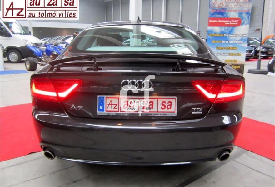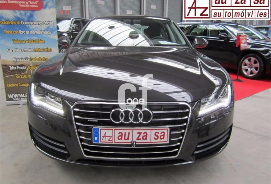 AUDI A7, Diesel, año 2012, 114000 kilómetros, color Negro metalizado, precio 28700€. Paquete técnico,Inserciones decorativas en aluminio mate especial Audi exclusive,Tapicería en cuero Milano,MMI navegación plus con MMI touch,Preinstalación de teléfono móvil con kit manos libres (Bluetooth),Teléfono Audi Bluetooth GSM online,Iluminación de ambiente,Paquete deportivo S line,Paquete exterior S line,Sistema de alarma antirrobo,Espejos retrovisores exteriores calefactables antideslumbrantes automáticamente plegables eléctricamente,Llantas de aleación 9Jx20 diseño de 7 radios dobles pulido brillante con neumáticos 265/35 R20 (Audi exclusive),Pintura efecto perla,Pintura metalizada,Volante deportivo de cuero multifuncional de tres radios con levas de cambio,Audi parking system plus,Fijaciones Isofix para el asiento del acompañante con interruptor para desconectar el airbag. COMO NUEVO. Nacional.