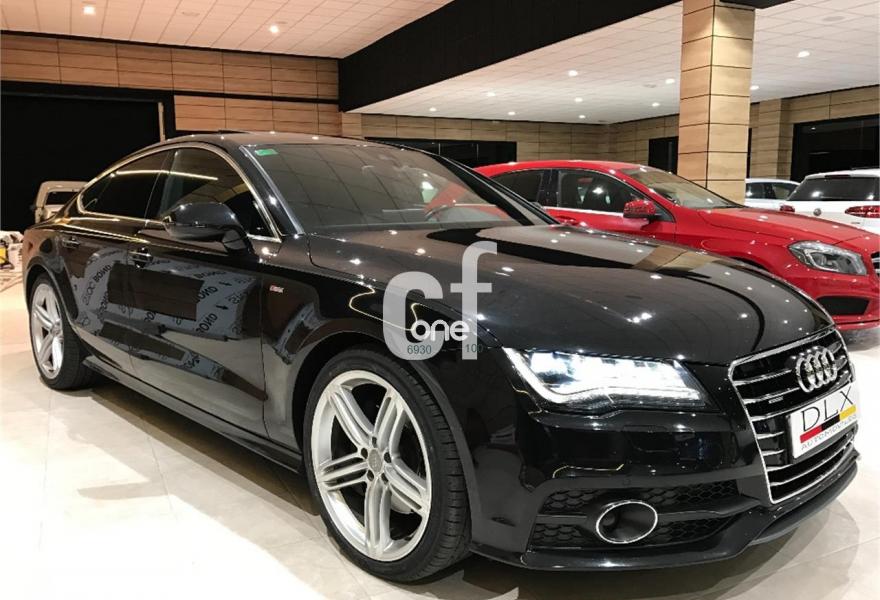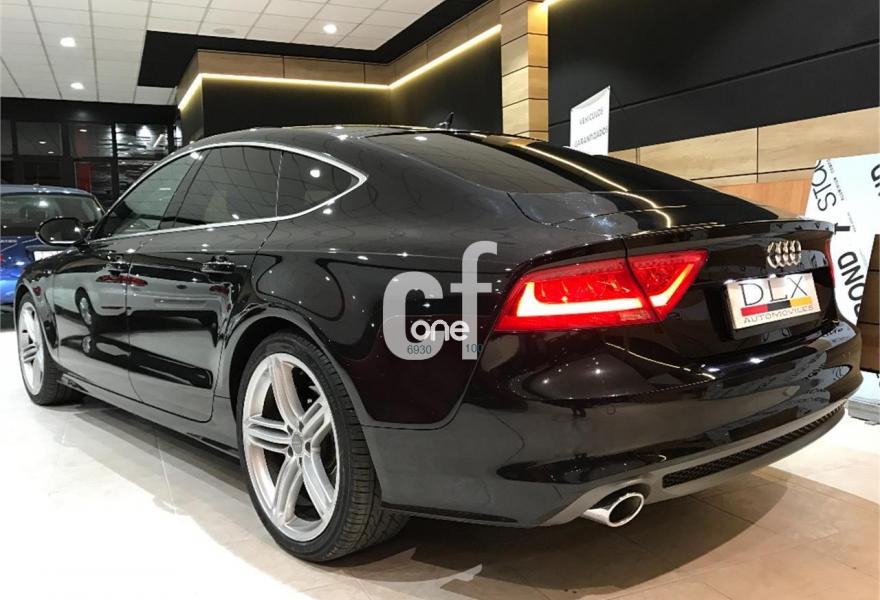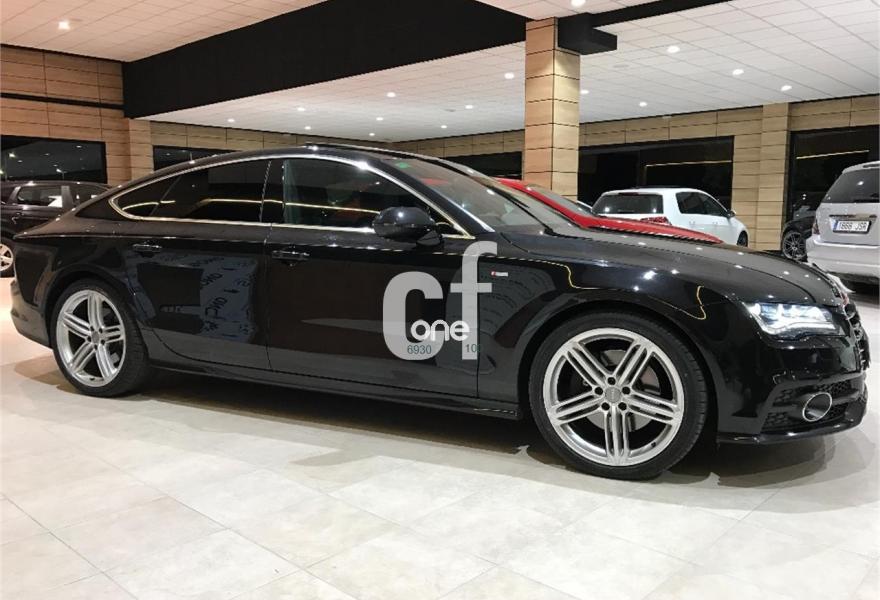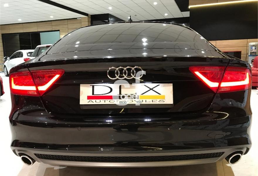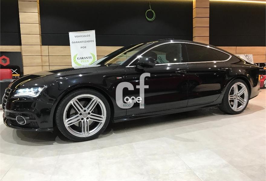 AUDI A7, Diesel, año 2012, 69000 kilómetros, color Negro metalizado, precio 38900€. Audi side assist con pre sense rear con Audi active lane assist,Paquete Comfort,Paquete de asistentes,quattro con diferencial deportivo,Sistema de aviso de límite de velocidad por reconocimiento de señales,Asientos delanteros y traseros calefactados,Audi side assist con pre sense rear,Inserciones decorativas en aluminio mate especial Audi exclusive,Paquete de cuero,Paquete de piel y tapa de airbag Audi Exclusive,Reposabrazos de las puertas en cuero,Tapicería Alcantara perforada/piel con logo S line en asientos delanteros,Tapicería de cuero individual (paquete 1) en Alcantara/cuero,Vehículo de 5 plazas,Equipo de sonido BOSE Surround,Audi music interface,MMI navegación plus con MMI touch,Teléfono Audi Bluetooth GSM online,Ajuste eléctrico del volante,Alcantara Cuero Negro/Gris Jet - S line,Asientos delanteros eléctricos con función memoria para el conductor,Cierre servoasistido de las puertas,Calefacción/ventilación estacionaria programable con mando a distancia,Climatizador automático de cuatro zonas,Faros completos en tecnología LED,Espejos retrovisores exteriores plegables eléctricamente con función memoria,Iluminación de ambiente,Luz adaptativa "adaptive light" con regulación continua del alcance de las luces,Llave de confort con apertura por control gestual,Paquete deportivo S line,Paquete exterior S line,Sistema de alarma antirrobo,Techo corredizo eléctrico de cristal,Volante en cuero Audi exclusive,Cristales tintados oscuros,Cristal aislante/insonorizante con cristales tintados oscuros,Espejos retrovisores exteriores calefactables antideslumbrantes automáticamente, plegables eléctricamente y con función memoria,Llantas de aleación 9Jx20 diseño de 5 radios segmentados con neumáticos 265/35 R20 (Audi exclusive),Pintura metalizada,Negro Phantom (efecto perla),Suspensión deportiva S line,Suspensión neumática adaptativa,Tren de rodaje deportivo,Volante deportivo de cuero multifuncional de tres radios con levas de cambio, calefactable,Audi active lane assist,Cámara de visión trasera,Audi parking system plus,Control de crucero adaptativo con pre sense front,Dispositivo de remolque,Fijaciones Isofix para el asiento del acompañante con interruptor para desconectar el airbag. -LIBRO DE MANTENIMIENTO SELLADO EN CONCESIONARIO AUDI.