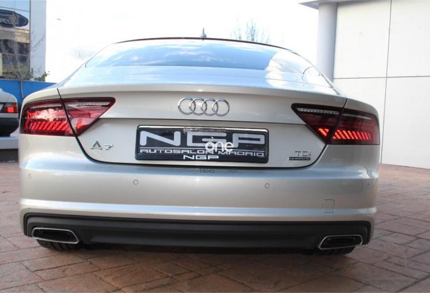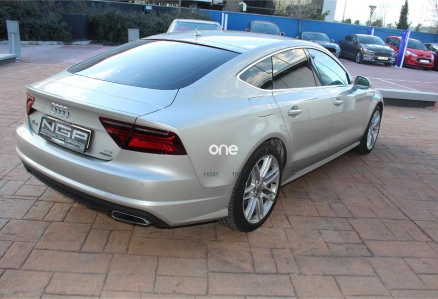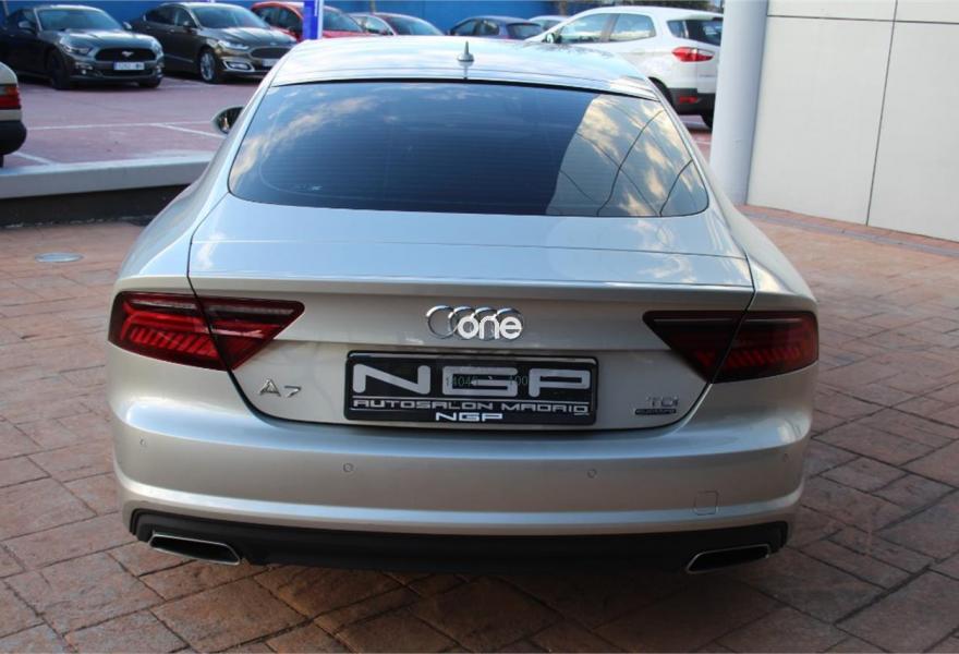 AUDI A7, Diesel, año 2015, 36000 kilómetros, color Gris / Plata (Champagne ) metalizado, precio 45900€. Paquete Comfort,Paquete técnico,Sistema de aviso de límite de velocidad por reconocimiento de señales,Asientos deportivos,Tapicería en cuero Valcona,Vehículo de 5 plazas,MMI navegación plus con MMI touch,Radio Digital DAB,Reproductor y cambiador DVD,Cable USB,Asientos de confort con función memoria,Espejos retrovisores exteriores antideslumbrantes automáticos, plegables eléctricamente y con función memoria,Faros Audi Matrix LED,Iluminación de ambiente,Interface para sistema de localización de vehículos (preinstalación),Sistema de alarma antirrobo,Volante y pomo en cuero Audi exclusive,Beige Karat (metalizado),Llantas aluminio forjado en diseño de 5 radios en W, gris contraste, parc. pulidas, 9 Jx 20 con neumáticos 265/35 R 20,Suspensión neumática adaptativa,Volante deportivo de cuero multifuncional de tres radios con levas de cambio, calefactable,Audi parking system plus. Nacional , entrega inmediata , libro de revsisones oficial , todos los extras , garantía de un año . 21% IVA DEDUCOBLE .