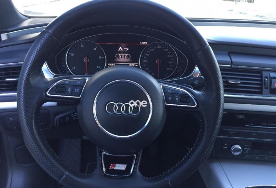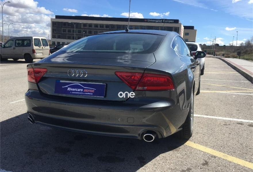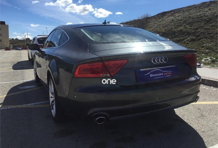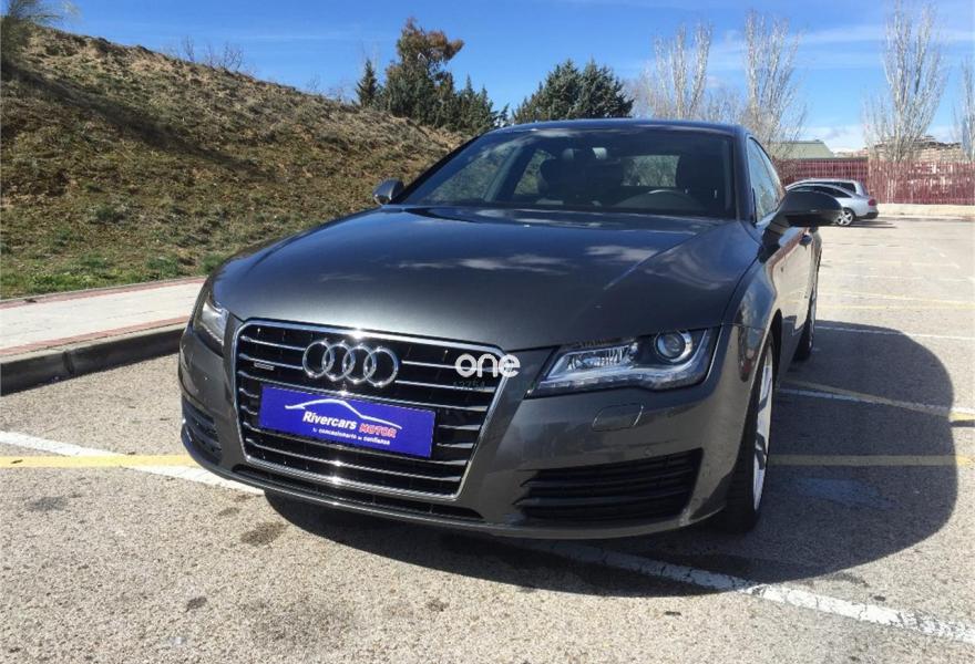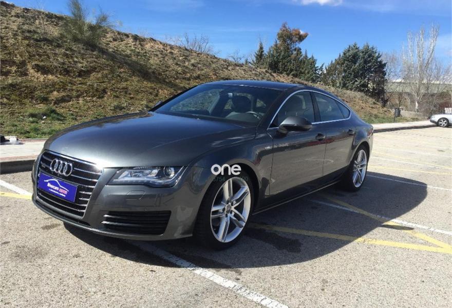 AUDI A7, Diesel, año 2014, 76000 kilómetros, color Gris / Plata , precio 31900€. Cámara delantera y trasera,Paquete Comfort,Paquete de asistentes,Paquete técnico,Audi side assist con pre sense rear con Audi active lane assist,Asientos de confort con función memoria,Asientos delanteros calefactados,Audi side assist con pre sense rear,Inserciones decorativas en aluminio mate especial Audi exclusive,Paquete de cuero,Reposabrazos de las puertas en cuero,Vehículo de 5 plazas,Audi music interface,Mando a distancia (HomeLink),Radio Digital DAB,Receptor de radio y TV digital,Teléfono Audi Bluetooth GSM online,Ajuste eléctrico del volante,Cuero Valcona Negro - S line,Faros completos en tecnología LED,Iluminación de ambiente,Interface para sistema de localización de vehículos (preinstalación),Luz adaptativa "adaptive light" con regulación continua del alcance de las luces,Molduras de entrada al vehículo S line,Paquete deportivo S line,Paquete exterior S line,Paquete S line Edition,Pintura efecto perla,Pintura metalizada,Tren de rodaje deportivo,Suspensión deportiva S line,Volante deportivo de cuero multifuncional de tres radios con levas de cambio,Asistente de aparcamiento park assist,Audi parking system plus,Cámara de visión trasera,Control de crucero adaptativo con pre sense front,Fijaciones Isofix para el asiento del acompañante con interruptor para desconectar el airbag. EL PRECIO NO ESTA SUJETO A FINANCIACION