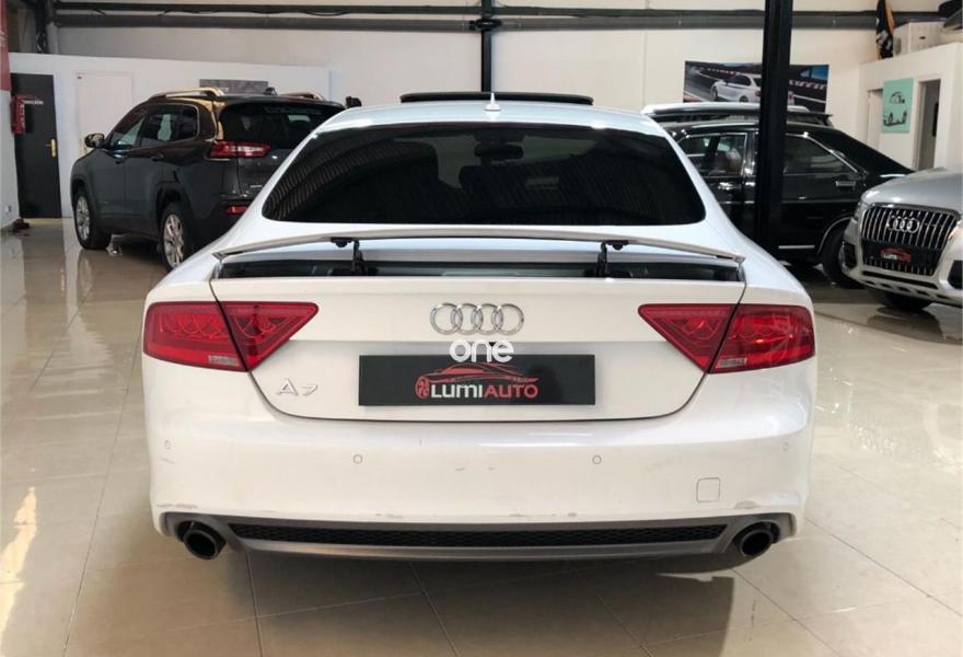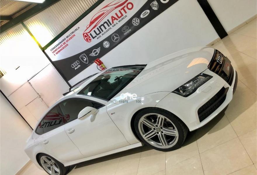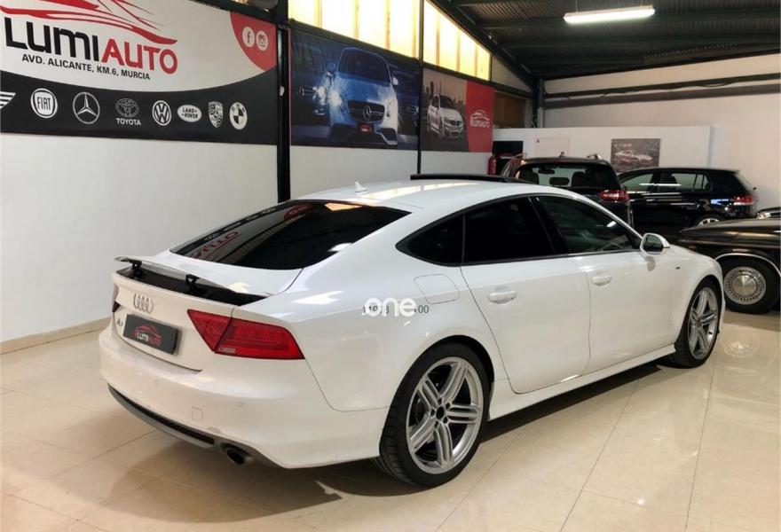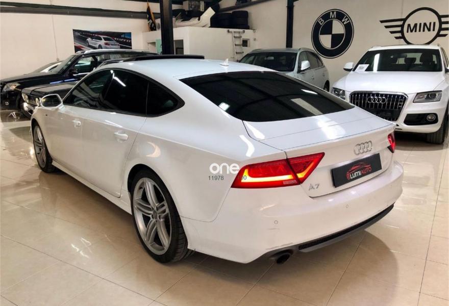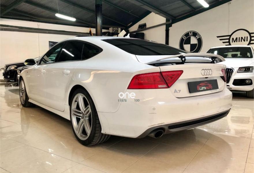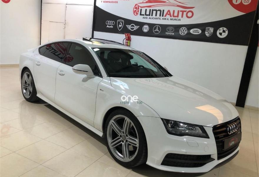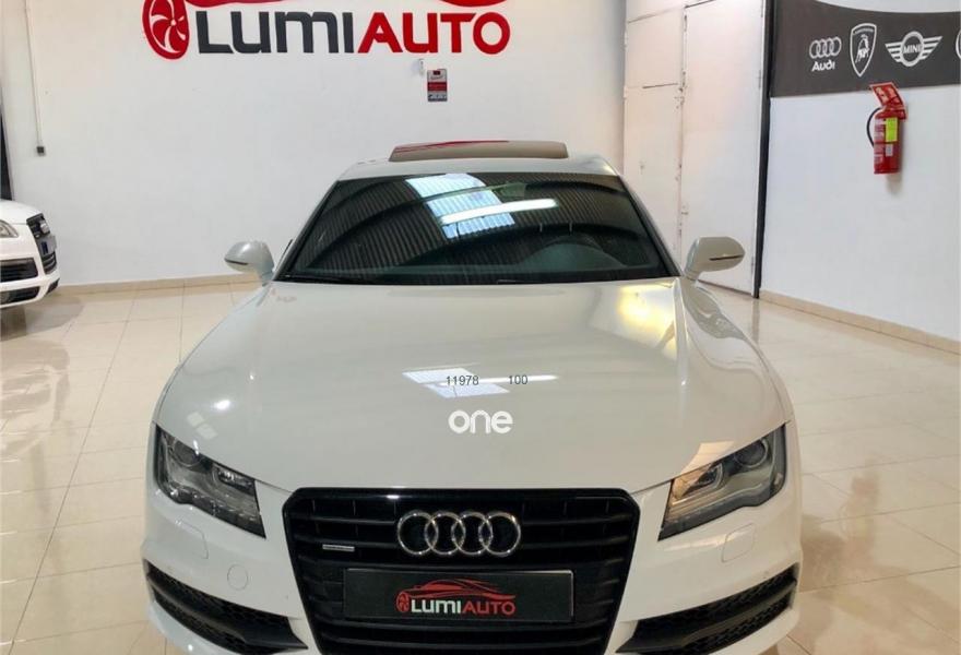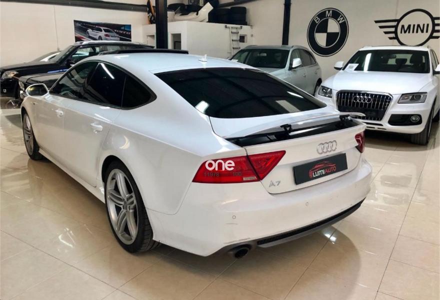 AUDI A7, Diesel, año 2012, 100000 kilómetros, color Blanco metalizado, precio 33900€. Audi a7 3. 0 TDI, S-LINE exterior e interior, coche muy equipado, llanta 20 faros bixenon gps es 5 plazas sensores de aparcamiento delantero y trasero con camara trasera, techo solar 4 climas digitales arranque sin llave cambio automático s. tronic paquete iluminación interior y exterior sonido Bosé, climatizador bizona, sensores de luces y lluvia, se entrega revisado y transferido. Color Blanco Puro.