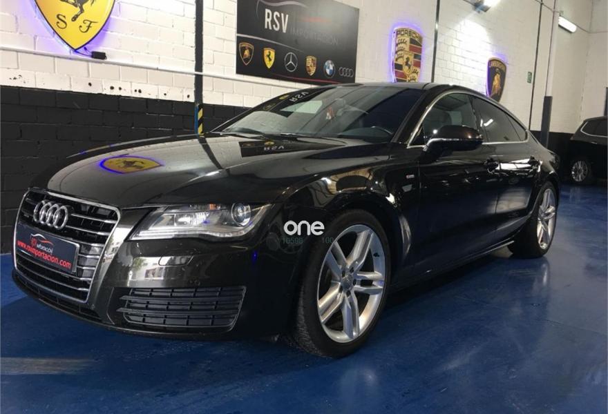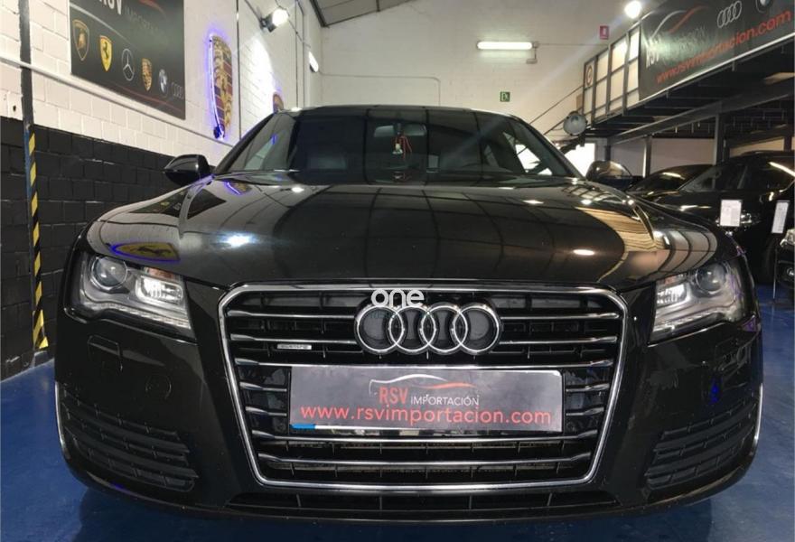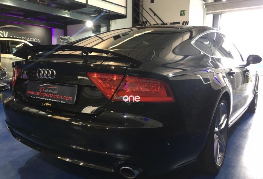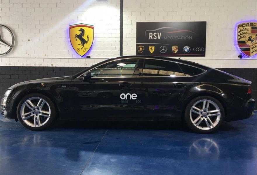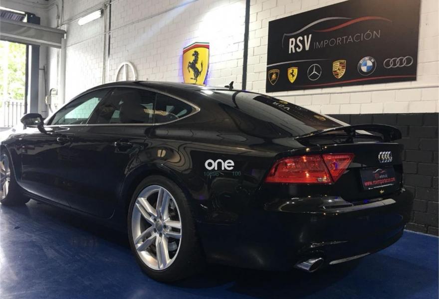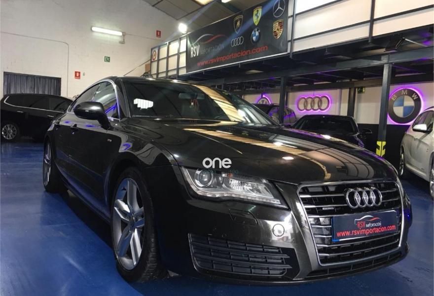 AUDI A7, Diesel, año 2012, 192942 kilómetros, color Negro metalizado, precio 25990€. quattro con diferencial deportivo,Sistema de aviso de límite de velocidad por reconocimiento de señales,Asientos de confort con función memoria,Asientos delanteros calefactados,Tapicería Alcantara perforada/piel con logo S line en asientos delanteros,MMI navegación plus con MMI touch,Alcantara Cuero Negro/Gris Jet - S line,Asientos delanteros eléctricos con función memoria para el conductor,Espejos retrovisores exteriores plegables eléctricamente con función memoria,Paquete deportivo S line,Paquete exterior S line,Negro Brillante,Suspensión deportiva S line,Cámara de visión trasera,Llantas de aleación 9Jx19 diseño de 5 radios dobles con neumáticos 255/40 R 19 (Audi exclusive).