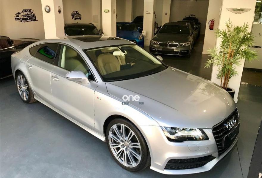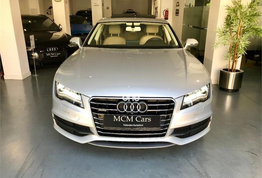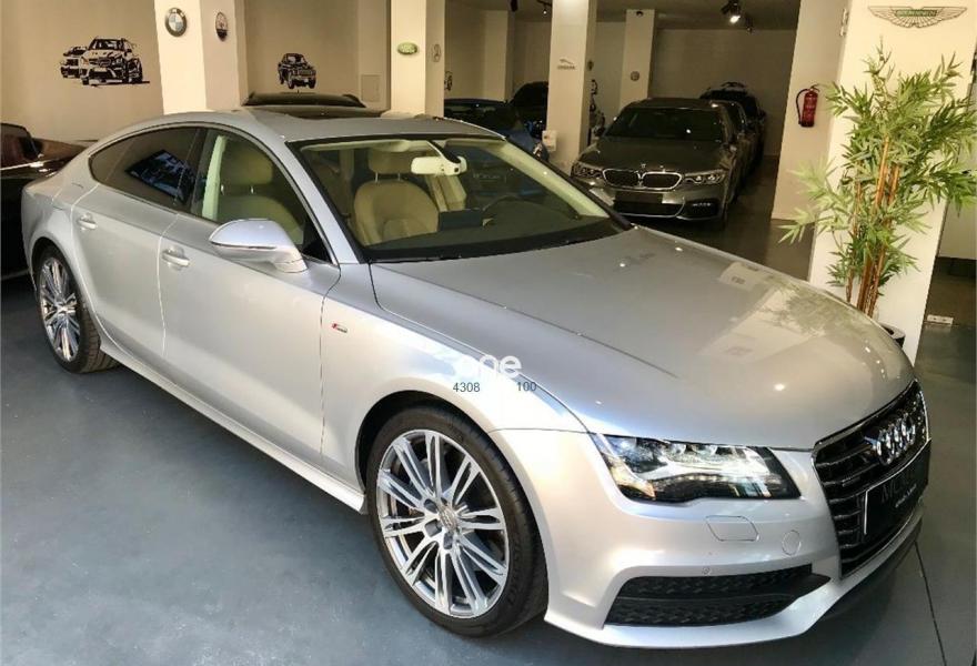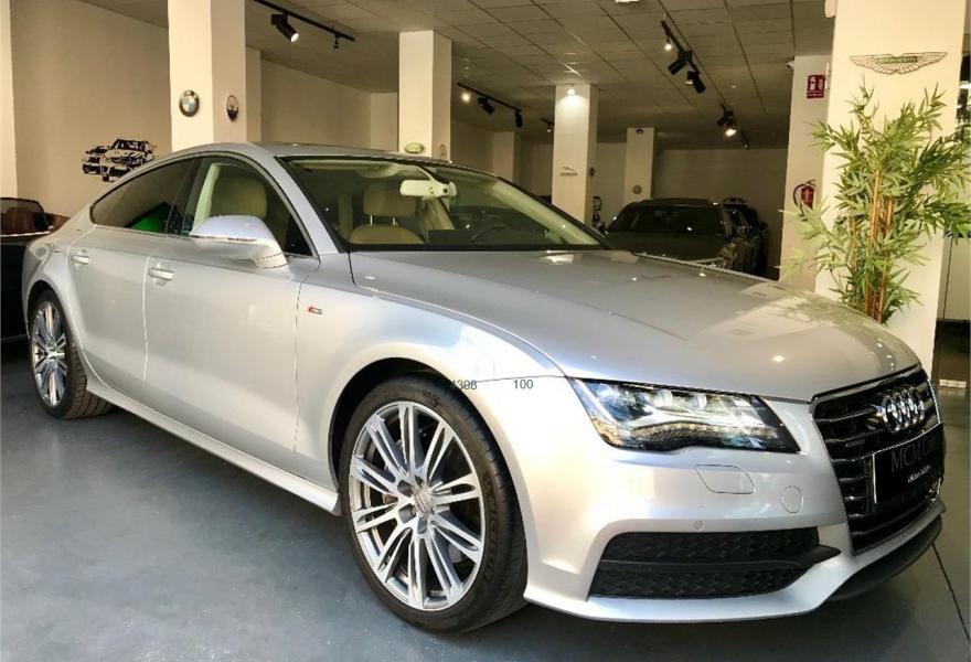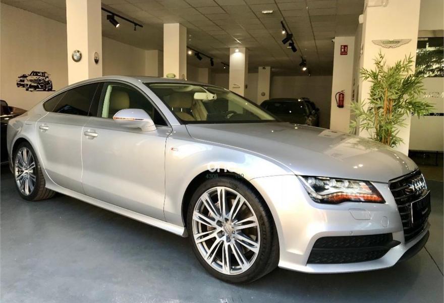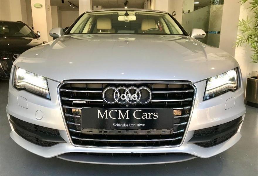 AUDI A7, Diesel, año 2013, 144000 kilómetros, color Gris / Plata metalizado, precio 35999€. Cámara delantera y trasera,Asientos delanteros climatizados con función masaje,Asientos delanteros y traseros calefactados,Paquete de cuero,Tapicería de cuero individual (paquete 1) en cuero Valcona,Vehículo de 5 plazas,Asientos delanteros eléctricos con función memoria para el conductor,Paquete exterior S line,Techo corredizo eléctrico de cristal,Gris Dakota (metalizado),Llantas de aleación 9Jx20 diseño de 10 radios paralelos con neumáticos 265/35 R 20,Pintura metalizada,Sin inscripción trasera de modelo y motor,Asistente de aparcamiento park assist,Cámara de visión trasera,Inserciones en madera de raíz de nogal marrón oscuro,MMI navegación plus con MMI touch,Climatizador automático de cuatro zonas,Cuero Valcona Beige Goa - Asientos Normales,Faros completos en tecnología LED. - LIBRO MANTENIMIENTO COMPLETO
