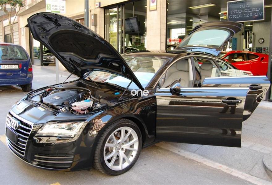 AUDI A7, Diesel, año 2011, 209000 kilómetros, color Negro metalizado, precio 23999€. Asientos delanteros calefactados,Asientos de confort con función memoria,Paquete de cuero,Tapicería Alcantara perforada/piel con logo S line en asientos delanteros,Equipo de sonido BOSE Surround,MMI navegación plus con MMI touch. en breve en nuestras instalaciones, las fotografías corresponden a otro vendido, en cuanto lo recibimos las cambiamos..