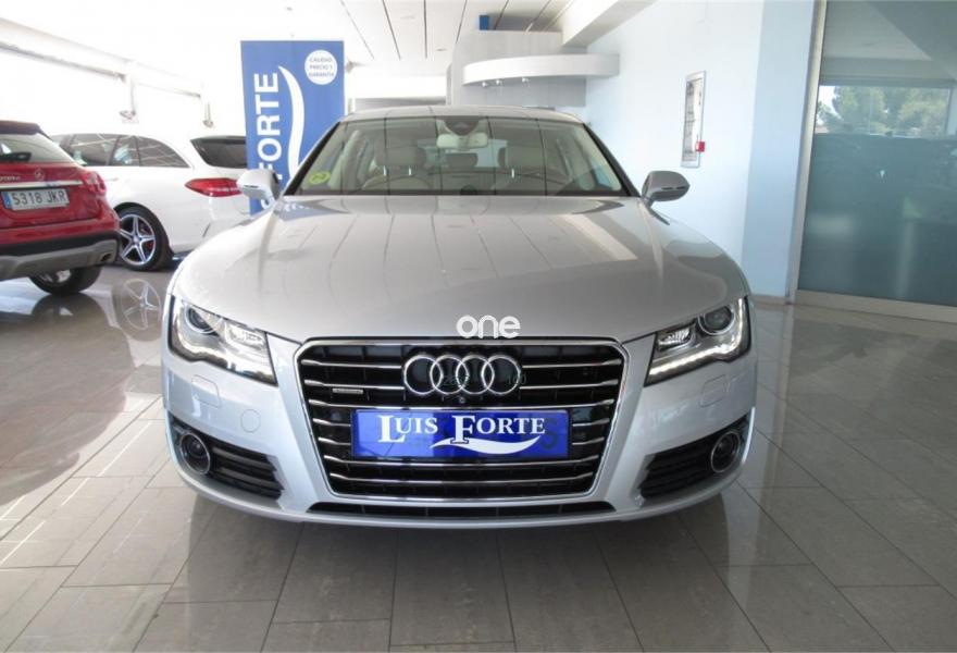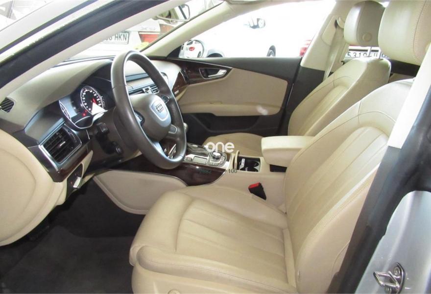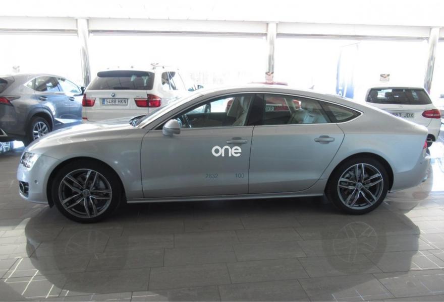 AUDI A7, Diesel, año 2014, 114000 kilómetros, color Gris / Plata metalizado, precio 31900€. Audi side assist con pre sense rear con Audi active lane assist,Cámara delantera y trasera,Paquete Comfort,Paquete de asistentes,Sistema de aviso de límite de velocidad por reconocimiento de señales,Asientos de confort con función memoria,Asientos delanteros calefactados,Asientos delanteros climatizados,Audi side assist con pre sense rear,Inserciones en madera de fresno marrón natural,Reposabrazos de las puertas en cuero,Tapicería en cuero Milano,Vehículo de 5 plazas,MMI navegación plus con MMI touch,Asientos delanteros eléctricos con función memoria para el conductor,Climatizador automático de cuatro zonas,Cuero Valcona Beige Goa - Asientos Normales,Dirección dinámica,Preinstalación de teléfono móvil con kit manos libres (Bluetooth),Llantas de aleación 9Jx19 diseño de 5 radios dobles con neumáticos 255/40 R 19 (Audi exclusive),Pintura metalizada,Plata Hielo (metalizado),Sin inscripción trasera de modelo y motor,Audi active lane assist,Audi parking system plus,Asistente de aparcamiento park assist,Cámara de visión trasera,Control de crucero adaptativo con pre sense front,Fijaciones Isofix para el asiento del acompañante con interruptor para desconectar el airbag. AUDI A7 3.0 TDI QUATTRO S-TRONIC