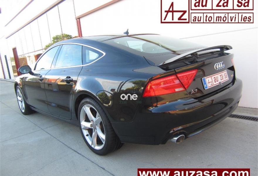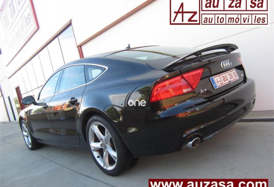 AUDI A7, Diesel, año 2012, 126000 kilómetros, color Negro metalizado, precio 24600€. Paquete técnico,Asientos delanteros calefactados,Inserciones decorativas en aluminio mate especial Audi exclusive,Paquete de cuero,Tapicería en cuero Milano,Vehículo de 5 plazas,Audi music interface,MMI navegación plus con MMI touch,Preinstalación de teléfono móvil con kit manos libres (Bluetooth),Teléfono Audi Bluetooth GSM online,Asientos delanteros eléctricos con función memoria para el conductor,Climatizador automático de cuatro zonas,Iluminación de ambiente,Espejos retrovisores exteriores plegables eléctricamente con función memoria,Sistema de alarma antirrobo,Paquete portaobjetos,Espejos retrovisores exteriores calefactables antideslumbrantes automáticamente plegables eléctricamente,Llantas de aleación 8,5Jx19 diseño de 5 brazos con neumáticos 255/35 R 19,Pintura metalizada,Pintura efecto perla,Volante deportivo de cuero multifuncional de tres radios con levas de cambio,Audi parking system plus,Fijaciones Isofix para el asiento del acompañante con interruptor para desconectar el airbag. COMO NUEVO. Nacional.