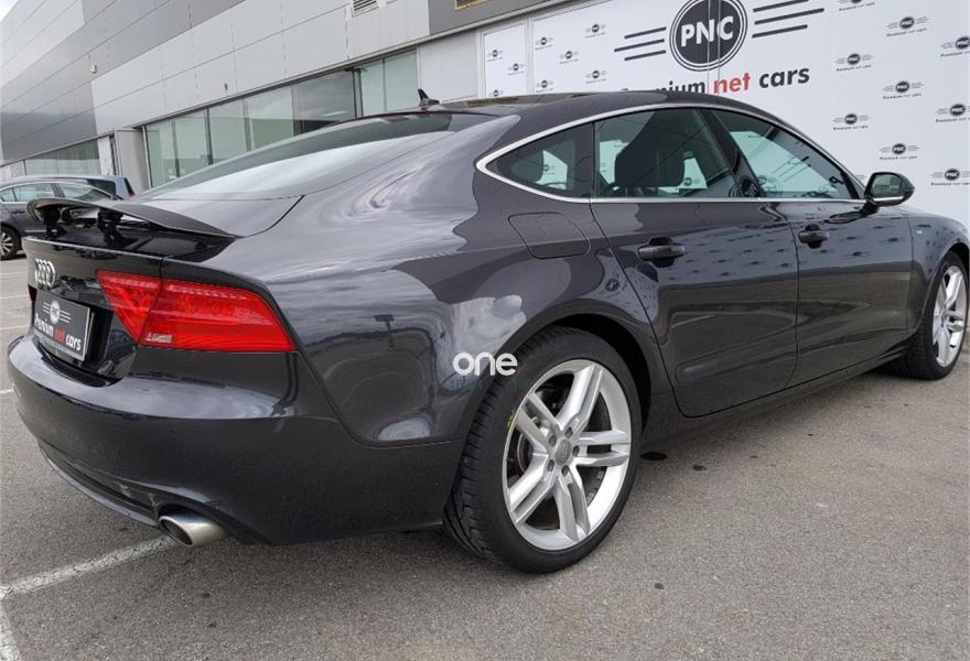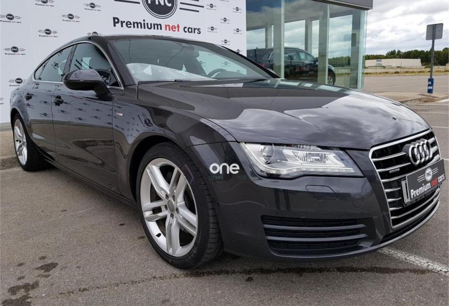 AUDI A7, Diesel, año 2014, 124000 kilómetros, color Negro metalizado, precio 31990€. quattro con diferencial deportivo,Asientos delanteros calefactados,Inserciones decorativas en aluminio mate especial Audi exclusive,Tapicería en cuero Valcona con logo S line en asientos delanteros,Vehículo de 5 plazas,MMI navegación plus con MMI touch,Volante de cuero multifuncional de cuatro radios calefactable,Cuero Valcona Negro - S line,Luz adaptativa "adaptive light" con regulación continua del alcance de las luces,Molduras de entrada al vehículo S line,Paquete deportivo S line,Paquete exterior S line,Preinstalación de teléfono móvil con kit manos libres (Bluetooth),Cristales tintados oscuros,Llantas de aleación 9Jx19 diseño de 5 radios dobles con neumáticos 255/40 R 19 (Audi exclusive),Pintura metalizada,Suspensión deportiva S line,Cámara de visión trasera,Asistente de aparcamiento park assist,Fijaciones Isofix para el asiento del acompañante con interruptor para desconectar el airbag. ******* Aceptamos su vehículo como parte de pago ********