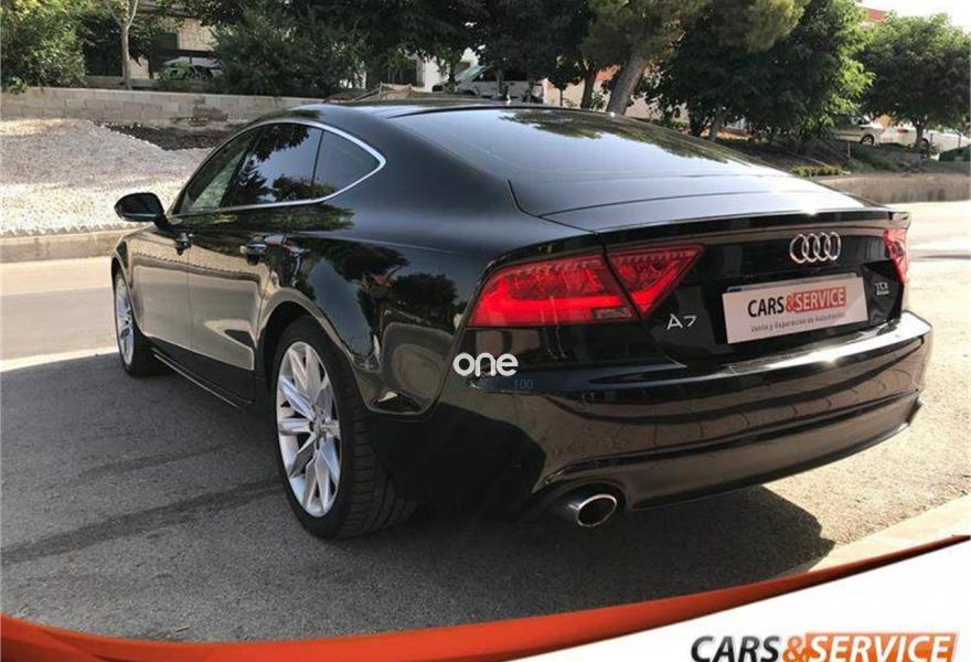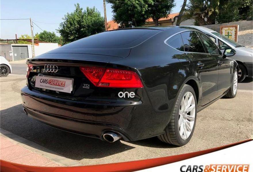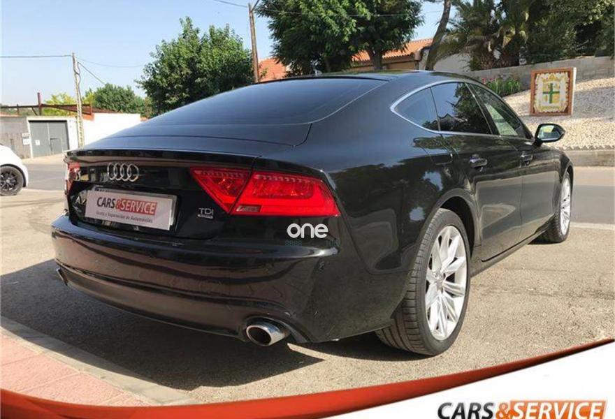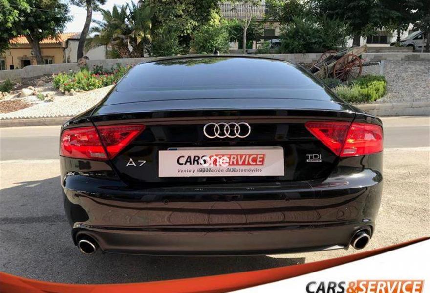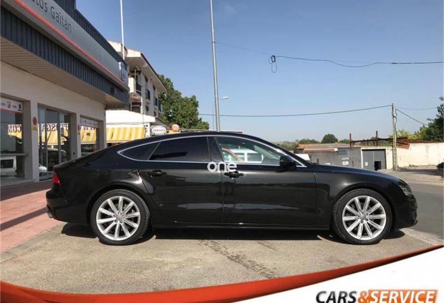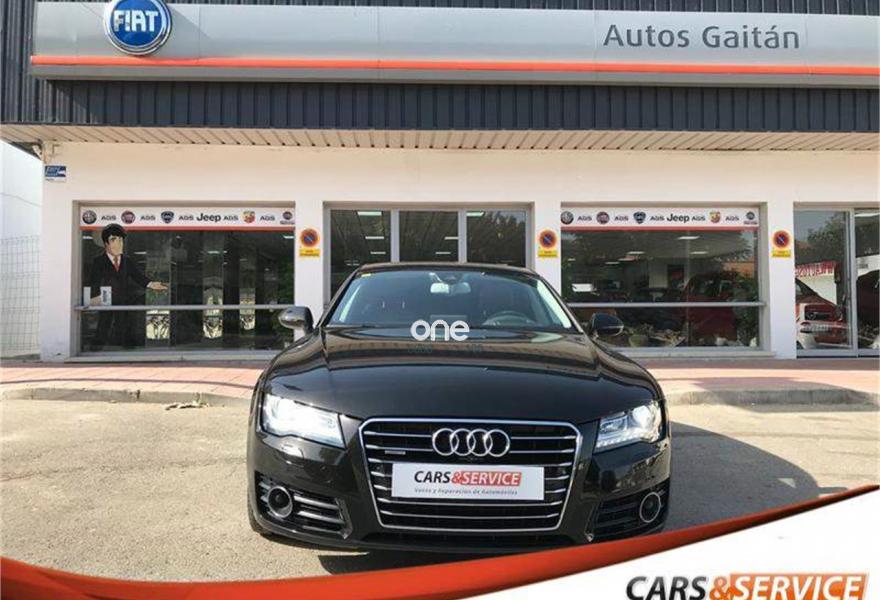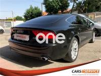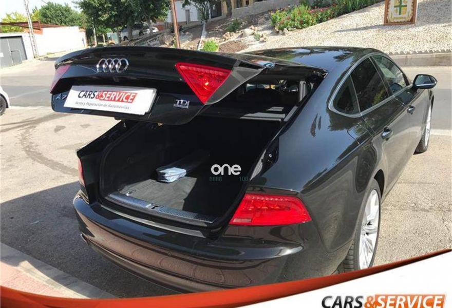 AUDI A7, Diesel, año 2012, 146800 kilómetros, color Negro metalizado, precio 28900€. Espectacular equipamiento con cambio automático con levas al volante, ordenador de a bordo, tapicería de cuero marrón, portón trasero eléctrico, sensor de lluvia y de luces, volante multifunción, sensor delantero, trasero y cámara de marcha atrás, Luces BiXenon , llantas 19” Techo Solar, Cristales laminados, interior en cuero marrón, control y limitador de velocidad, climatizador bizona, navegador, bluetooth y multimedia.