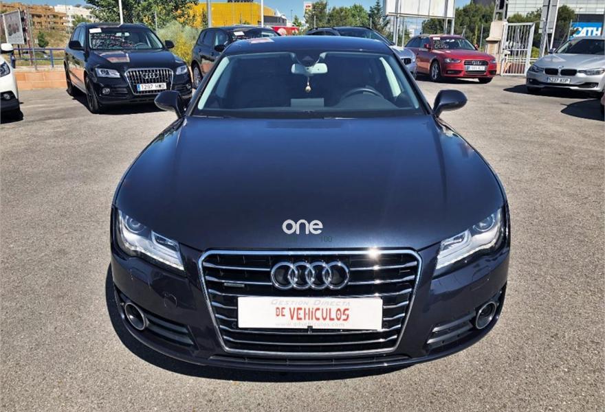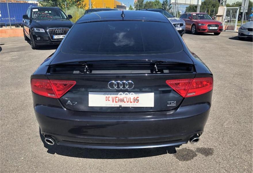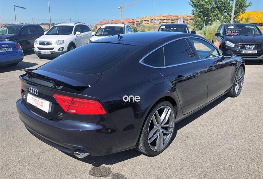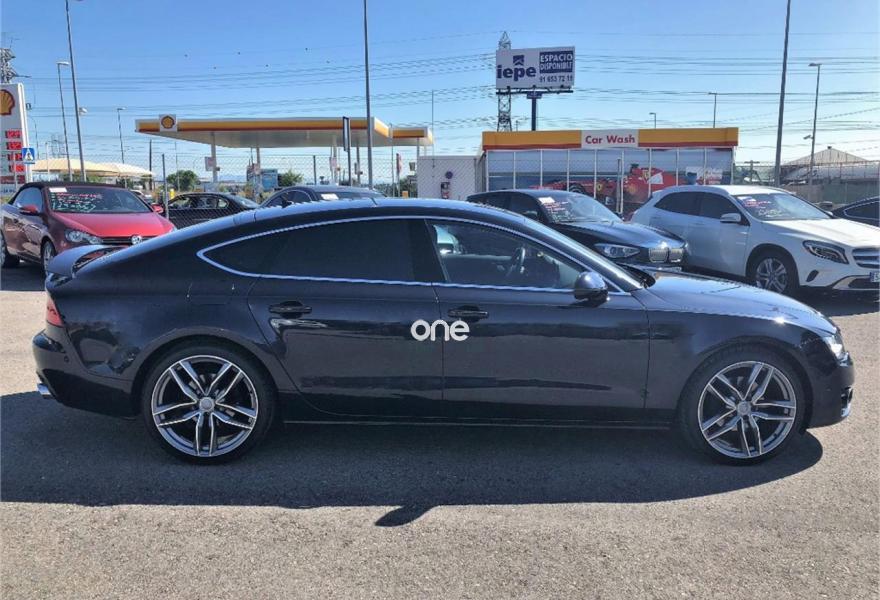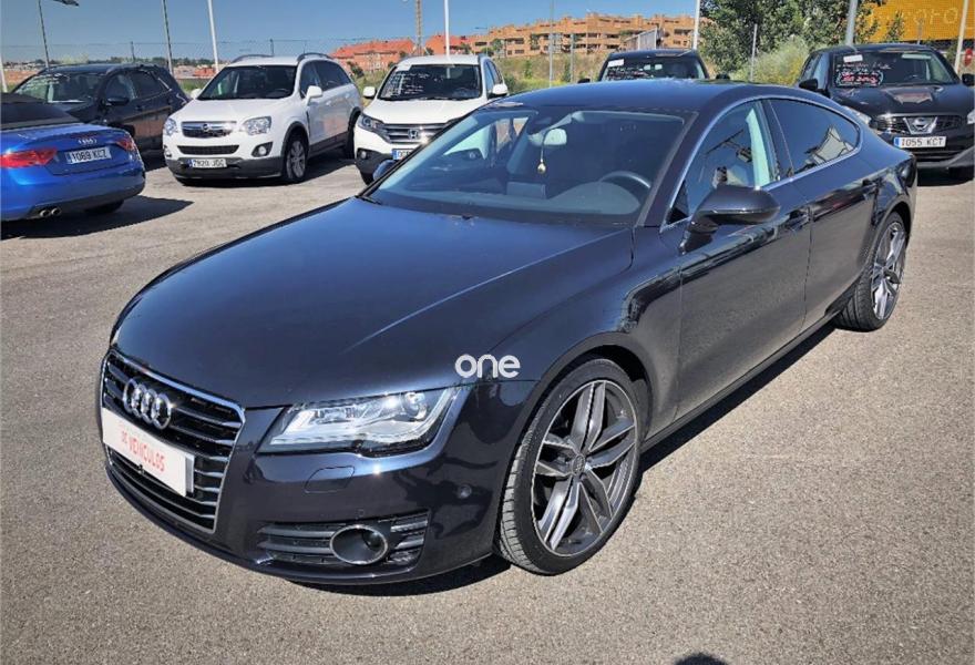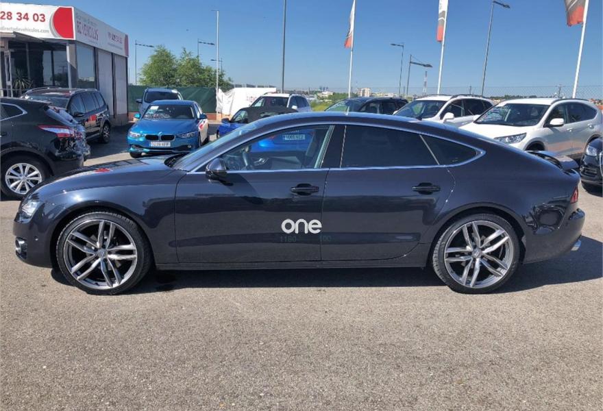 AUDI A7, Diesel, año 2013, 114000 kilómetros, color Azul (Azul Oscuro) metalizado, precio 23550€. Paquete técnico,Sistema de aviso de límite de velocidad por reconocimiento de señales,Asientos delanteros calefactados,Inserciones en madera de fresno marrón natural,Paquete de cuero,Reposabrazos de las puertas en cuero,Tapicería en cuero Milano,Vehículo de 5 plazas,Audi music interface,MMI navegación plus con MMI touch,Radio Digital DAB,Asientos delanteros eléctricos con función memoria para el conductor,Cuero Milano Negro - Asientos Normales,Iluminación de ambiente,Espejos retrovisores exteriores plegables eléctricamente con función memoria,Azul Lunar (metalizado),Espejos retrovisores exteriores calefactables antideslumbrantes automáticamente plegables eléctricamente,Pintura metalizada,Llantas de aleación 9Jx20 diseño de 7 radios dobles pulidas bicolor con neumáticos 265/35 R20 (Audi exclusive),Cámara de visión trasera,Fijaciones Isofix para el asiento del acompañante con interruptor para desconectar el airbag. * Historial de Mantenimiento.