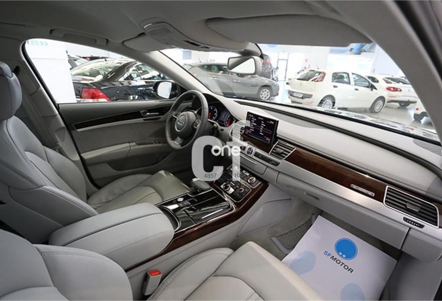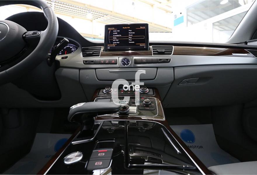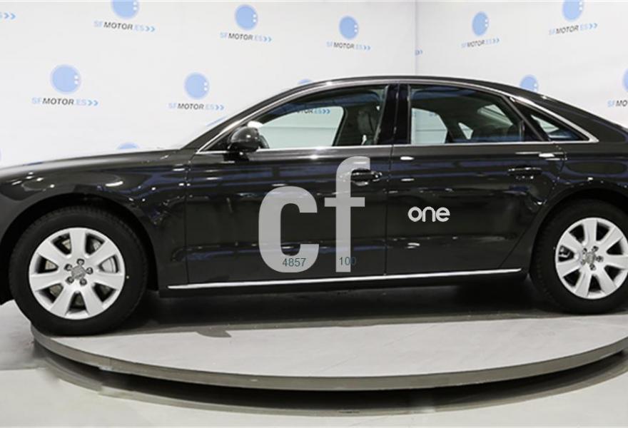 AUDI A8, Diesel, año 2012, 99000 kilómetros, color Gris / Plata (** GARANTÍA TOTAL e HISTORIAL DE MANTENIMIENTO **) metalizado, precio 39900€. Paquete comfort,Asientos de confort con función memoria,Alfombrillas en colores especiales (Audi exclusive),Inserciones decorativas en madera especial (Audi exclusive),Paquete interior no fumador,Reposabrazos de confort delante partido para conductor y acompañante,Tapicería en cuero natural,Paquete maletero,Instalación básica manos libres (Bluetooth) para teléfono móvil,Apertura y cierre eléctrico del maletero,Audi exclusive edition,Cierre servoasistido de las puertas,Cuero Natural Beige Terciopelo (Salpicadero Marrón/Beige) (Asientos confort),Dirección dinámica,Espejos retrovisores exteriores antideslumbrantes automáticos, plegables eléctricamente y con función de memoria,Faros completos en tecnología LED,Llave de confort con apertura por control gestual,Interface para sistemas de localización de vehículos,Inserciones inferiores en aluminio cepillado plata,Iluminación de ambiente,MMI navegación plus,Luz adaptativa "adaptive light" con regulación continua del alcance de las luces,Paquete de cuero ampliado,Paquete de cuero,Preinstalación de teléfono móvil con kit manos libres (Bluetooth),Volante deportivo de cuero multifuncional de 3 radios con levas de cambio,Gris Cuarzo (metalizado),Pintura metalizada,Sin inscripción trasera de motor,Audi lane assist (asistente de mantenimiento de carril),Control de crucero adaptativo. PRECIO 39.900€ (32975.21€ + IVA 6924.79€ TOTAL 39.900€) IVA Deducible, Transferencia y Garantía TOTAL ORO SF Motor 1 año incluido en el precio (Ampliable hasta 3 años). Vehículo nacional único propietario con libro de mantenimiento. Matriculación Noviembre 2011. Audi A8 4.2 TDI 350cv Quattro Tiptronic.