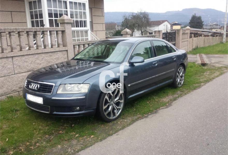 AUDI A8, Diesel, año 2005, 416000 kilómetros, color Gris / Plata (gris azulado) metalizado, precio 7990€. Vehiculo absolutamente espectacular, una de las mejores berlinas premium diesel del mercado sin duda, en muy buen estado, ya que los kms que posee el vehiculo, fueron realizados en su mayoria en autovìas y autopistas. Su equipamiento: abs, esp,, 4 elev, climat bizona del y tras, faros de xenon, sist de naveg, equipo de audio Bose con cargador de cd, susp neumat regulable, traccion quattro, tap de cuero, asient elec con multiples reglajes, cintu elect, cambio aut/secuencial, llantas en 20", volant multifun, sens de aparc, control automat de velociad, etc. precio de venta a profesionales, particulares consultar.. Se recoge vehiculo de inferior valor como parte de pago. .