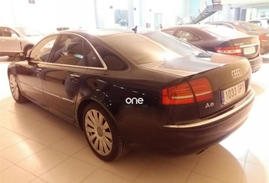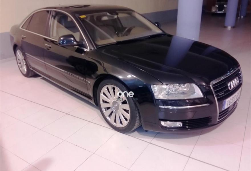 AUDI A8, Diesel, año 2009, 197412 kilómetros, color Negro metalizado, precio 30500€. Fijación para asientos infantiles ISOFIX y desactivador Airbag del acompañante,Negro Phantom (efecto perla),Lane assist (asistente de mantenimiento de carril),Side assist (asistente de cambio de carril),Audi parking system Advanced,Calefacción/ventilación estacionaria programable con mando a distancia,Segmentos de madera Audi exclusive ó madera estándar para el volante,Lane assist + side assist,Suspensión neumática adaptativa Sport,Cuero Valcona Marrón Amaretto,Cristales con laminado doble aislante con parabrisas calefactable,MMI navegación plus,Paquete maletero,Equipo Audiovisual "RSE" para asientos traseros,Sistema de control de presión de los neumáticos,Sistema de sonido BOSE Surround,Techo corredizo eléctrico de cristal con células solares,Volante de cuero de 4 radios multifuncional tiptronic calefactable,Sistema de alarma antirrobo con protección contra remolcado,Asientos delanteros climatizados,Asientos delanteros con función masaje,Asientos delanteros con memoria,Asientos delanteros climatizados con función masaje,Cierre servoasistido de las puertas,Intercambiador de CD + Reproductor DVD,Llantas de aleación 8,5J x 19 diseño de 12 radios brillante monocolor con neumáticos 255/40 R 19,Cristales tintados oscuros,Paquete de iluminación interior y exterior,Cortinilla eléctrica en luneta posterior y cortinillas eléctricas en ventanas laterales posteriores,Pomo del cambio en madera especial,Interface para sistemas de localización de vehículos,Receptor TV analógica y digital,Dos almohadas en cuero para la cabeza en asiento trasero,Sistema de apertura y arranque sin llave "Advanced key",Teléfono Audi Bluetooth GSM con auricular inalámbrico en apoyabrazos central delantero de confort. Saveres – Concesionario Oficial Mercedes Benz - kilometraje certificado - disponemos de la financiación que mejor se adapta a sus necesidades. financiamos hasta el 100 % del vehiculo. Un solo propietario. Vehiculo nacional..