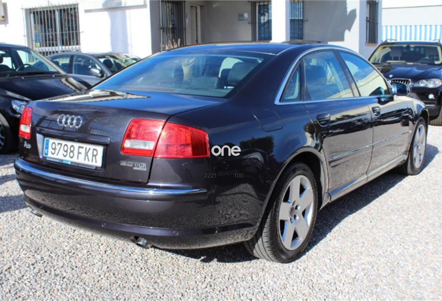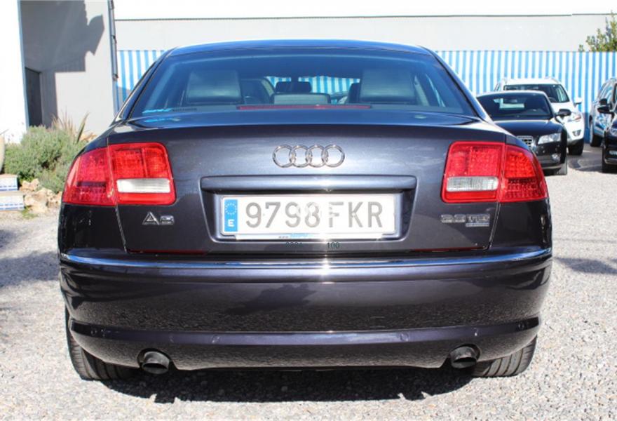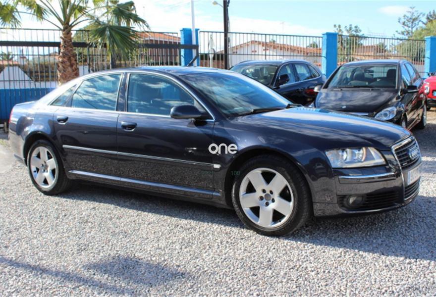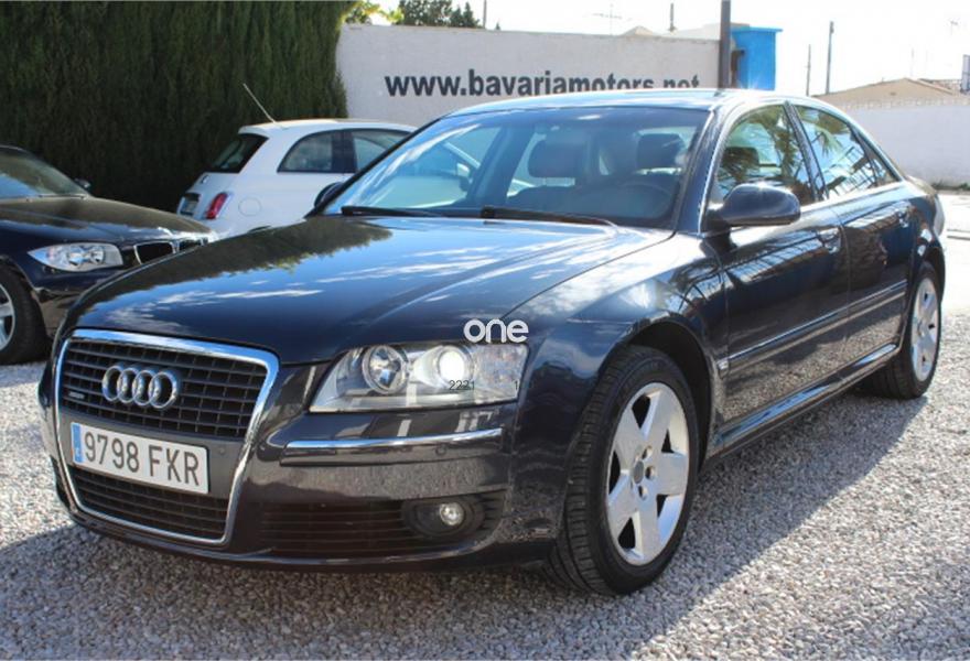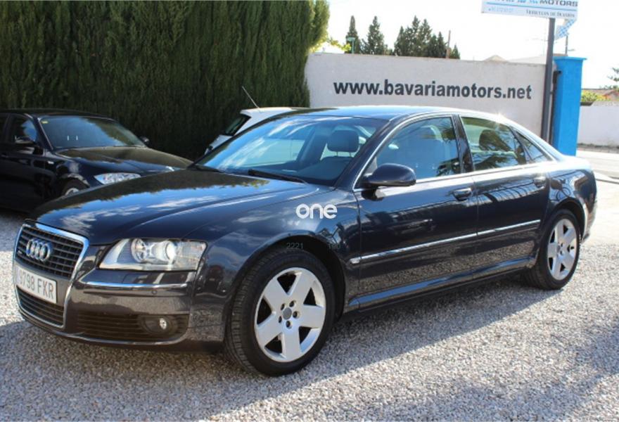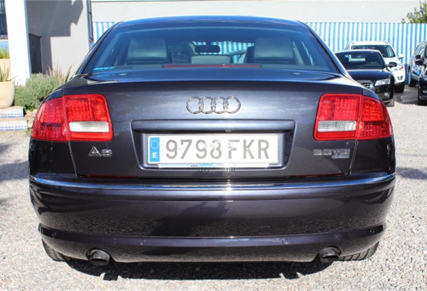 AUDI A8, Diesel, año 2007, 236000 kilómetros, color Gris / Plata (Gris oscuro metalizado) metalizado, precio 11990€. AUDI A8 3.0TDI QUATTRO, Automatico tiptronic, Navegador Plus, Faros de Xenon, Asientos de cuero, Volante multifuncion, Ordenador de abordo, Sensores de parking delanteros y traseros, Asientos electricos, Velocidad de crucero, Radio-cd+cargador, Lava faros, Antinieblas, Apoyabrazos, 4x Elevalunas electricos, Cierre con mando (2 Llaves), Llantas 18", ESP, 8 Airbag, ABS, Nacional, Libro de revisiones, IVA deducible,