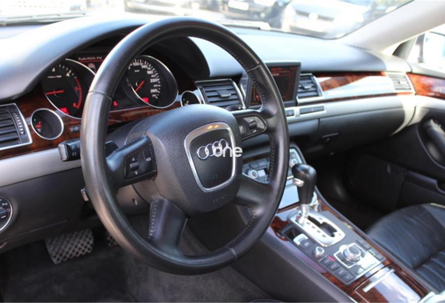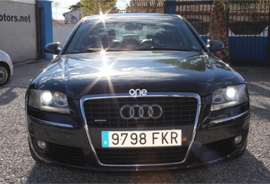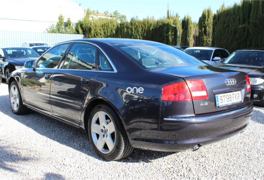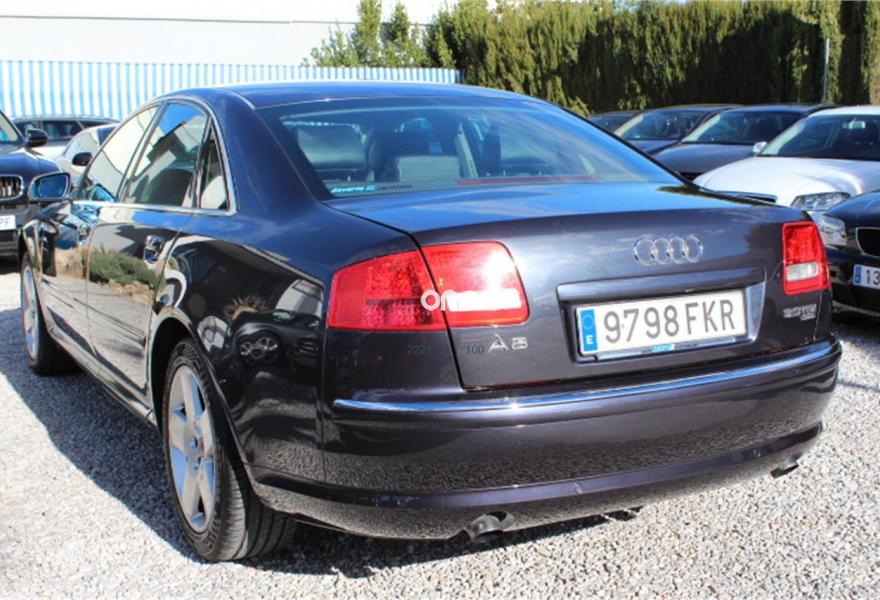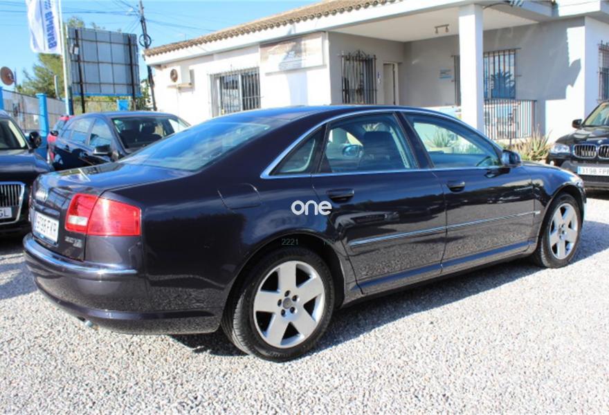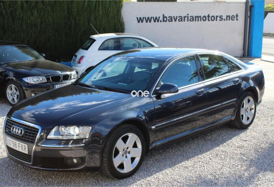 AUDI A8, Diesel, año 2007, 236000 kilómetros, color Gris / Plata (Gris oscuro metalizado) metalizado, precio 11990€. AUDI A8 3.0TDI QUATTRO, Automatico tiptronic, Navegador Plus, Faros de Xenon, Asientos de cuero, Volante multifuncion, Ordenador de abordo, Sensores de parking delanteros y traseros, Asientos electricos, Velocidad de crucero, Radio-cd+cargador, Lava faros, Antinieblas, Apoyabrazos, 4x Elevalunas electricos, Cierre con mando (2 Llaves), Llantas 18", ESP, 8 Airbag, ABS, Nacional, Libro de revisiones, IVA deducible,