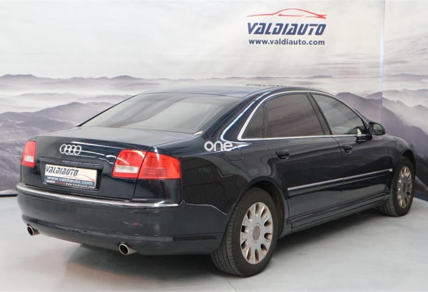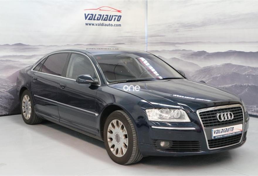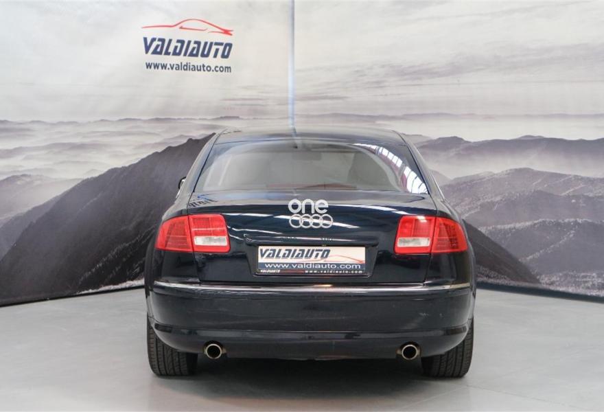 AUDI A8, Gasolina, año 2005, 370000 kilómetros, color Negro metalizado, precio 8500€. Asientos calefactados delant y traser,Astos deport + mem(30L,42L,40TDI L,60L),Astos func masaje (L),Cuero Natural,Paquete fumador,Dos intercambiadores de CD,Mando a distancia universal "home link",Prep para GSM en apoyabrazos trasero,Sintonizador de TV,Sist de sonido BOSE surround,Sistema de navegación DVD,Cortinillas electricas poster+laterales,Elementos de control en cuero especial,Inserciones interior en madera especial,Nevera,Mando a distancia para el sistema MMI,Luz adaptativa,Paquete iluminación interior y exterior,Paquete maletero,Llantas 8Jx18 "9 radios",Asientos traseros eléctric (TDI L),Suspensión neumática adaptativa Sport,Sist aparcamiento acústico del y tras. Audi A8 4.2 Quattro 334cv Limousine con Todos los extras: Llanta 17", Faros de xenón, volante multifunción, asientos eléctricos con memoria calefactados y ventilados, tapicería de piel, asientos confort, navegación, teléfono, nevera, televisión en plazas traseras, fax....no le cabe un extra mas, vehículo nacional con libro de revisiones en servicio oficial AUDI, todos los kms hechos por carretera, coche de 100.000 euros nuevo, oportunidad!!.