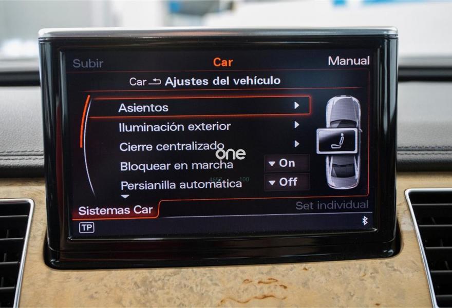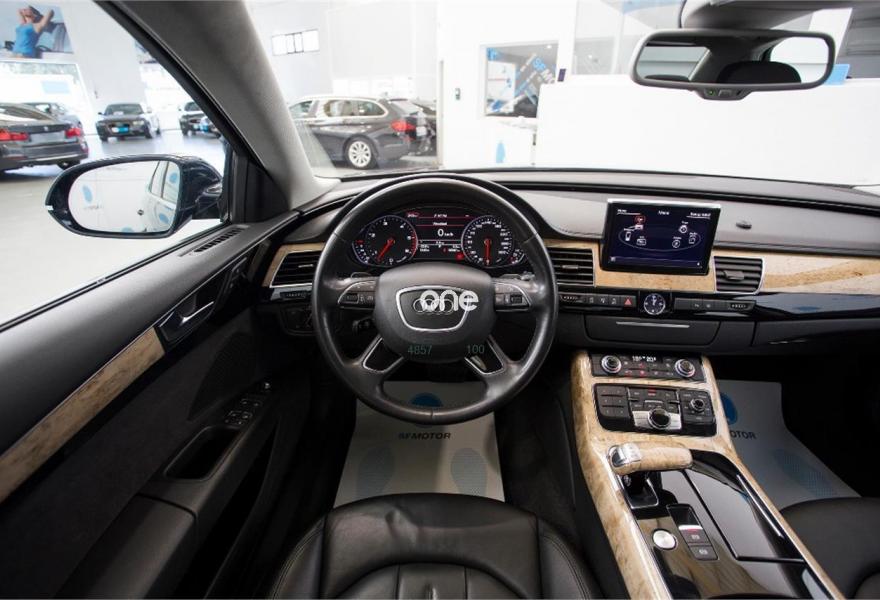 AUDI A8, Diesel, año 2012, 99000 kilómetros, color Azul (** GARANTÍA TOTAL y LIBRO DE MANTENIMIENTO **) metalizado, precio 34900€. Inserciones en madera de Abedul beige perla,Pomo de cambio en madera especial (Audi exclusive),Tapicería en cuero Valcona,Instalación básica manos libres (Bluetooth) para teléfono móvil,Paquete maletero,Apertura y cierre eléctrico del maletero,Audi exclusive edition,Cortinilla eléctrica en luneta posterior,Cortinilla eléctrica en luneta y ventanas laterales posteriores,Cuero Valcona Negro (Asientos normales),Paquete de cuero,Azul Noche (efecto perla),Pintura efecto perla,Llantas de aleación 9Jx19 diseño de 5 brazos con neumáticos 255/45 R 19,4 cámaras de entorno,Cámara de visión trasera. Audi A8 4.2 TDI 350cv Quattro Tiptronic - Nacional - Matriculación Febrero 2012 - 108.000km