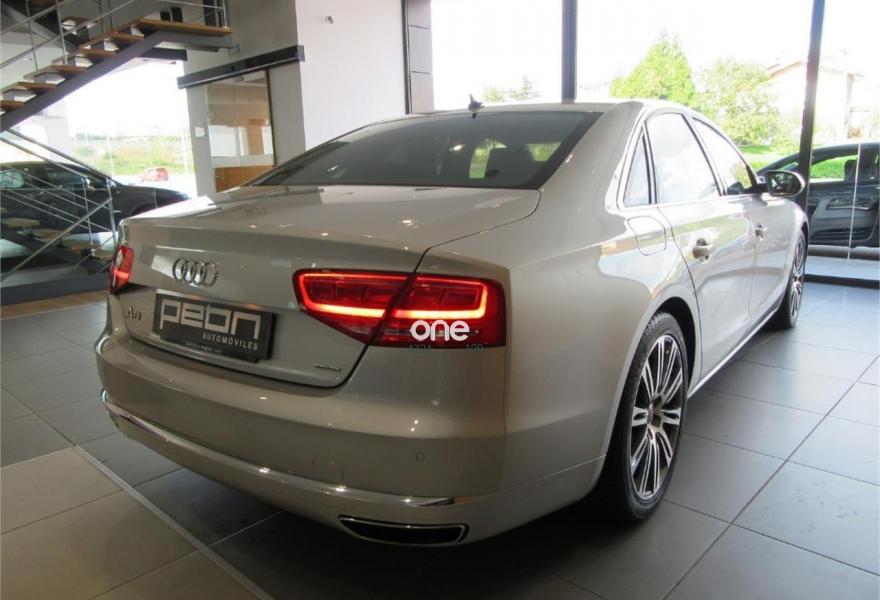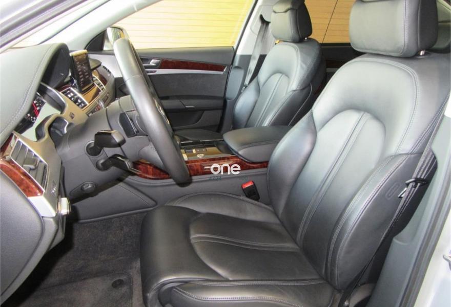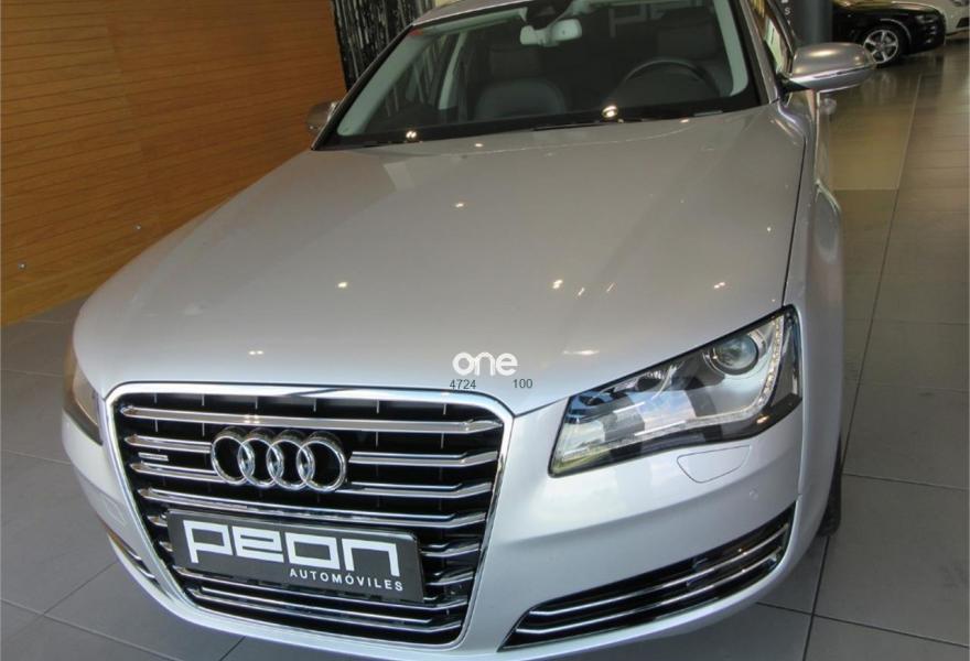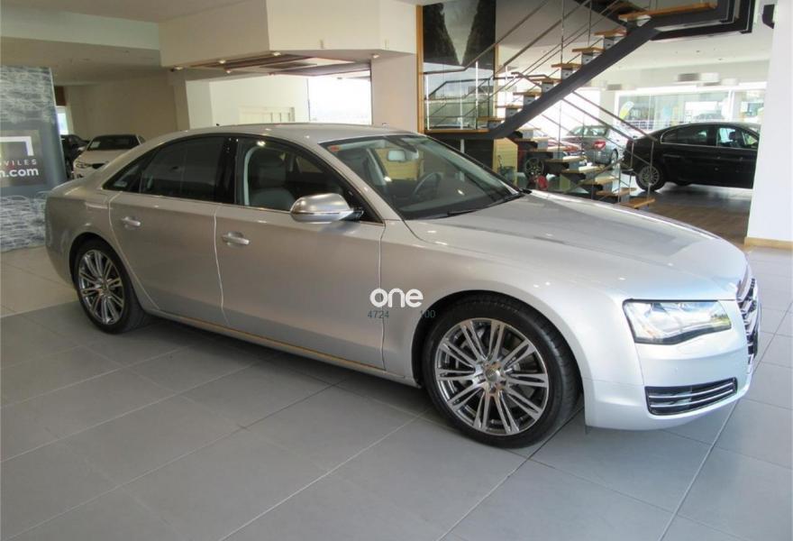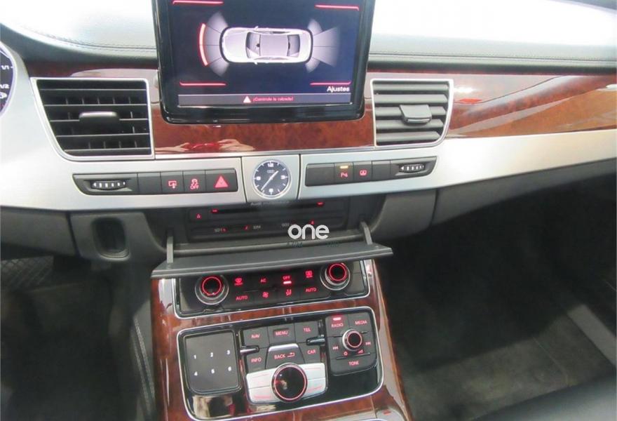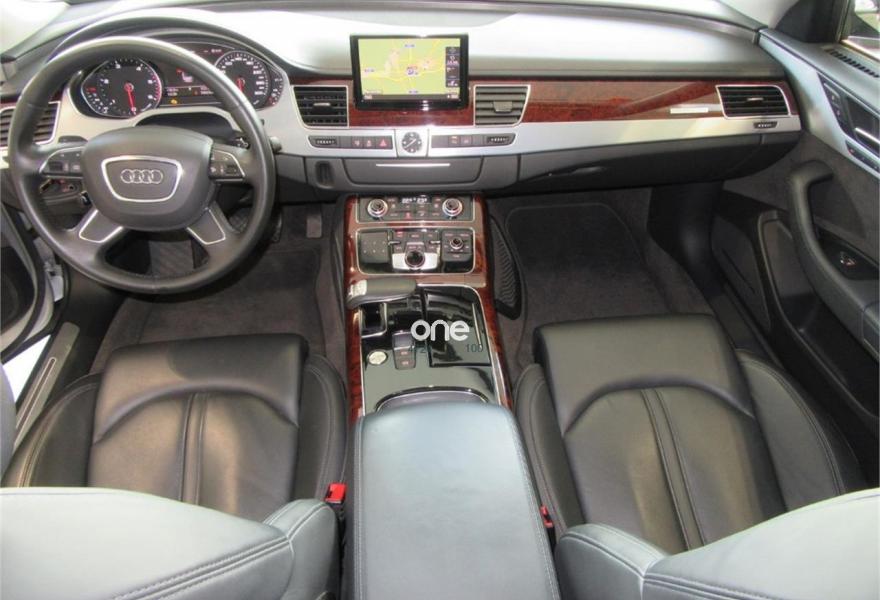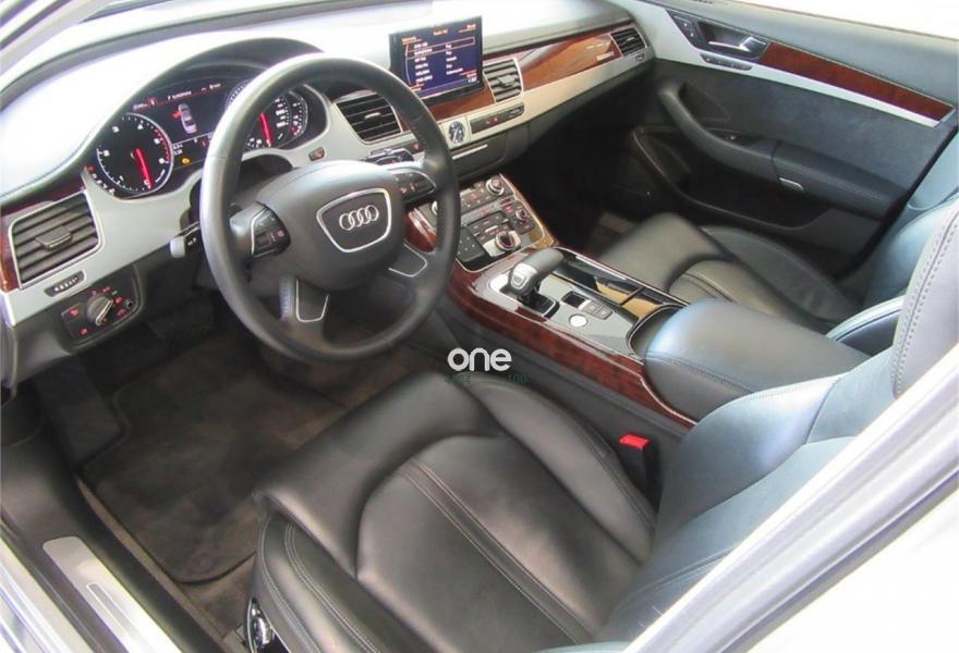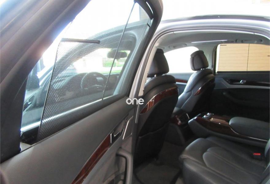 AUDI A8, Diesel, año 2010, 125000 kilómetros, color Gris / Plata metalizado, precio 35990€. Cambio Tiptronic 8v con levas en volante, climatizador automático para las 4 zonas, asientos delanteros Confort con memorias y calefactados, sistema navegación plus MMI, llantas aluminio 20”, volante multifunción, equipo sonido Bose, cortinillas para plazas traseras, lector de tarjetas SD, revestimiento interior en madera, suspensión neumática adaptativa, espejos antideslumbrantes, reposa-brazos trasero confort, teléfono Bluetooth ampliado, reposabrazos central delantero partido, reposabrazos trasero confort, apertura y cierre eléctrico de portón trasero, sistema de apertura de garaje, Auto Hold Assist, etc, etc. IVA deducible.