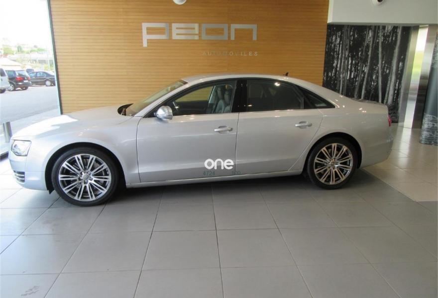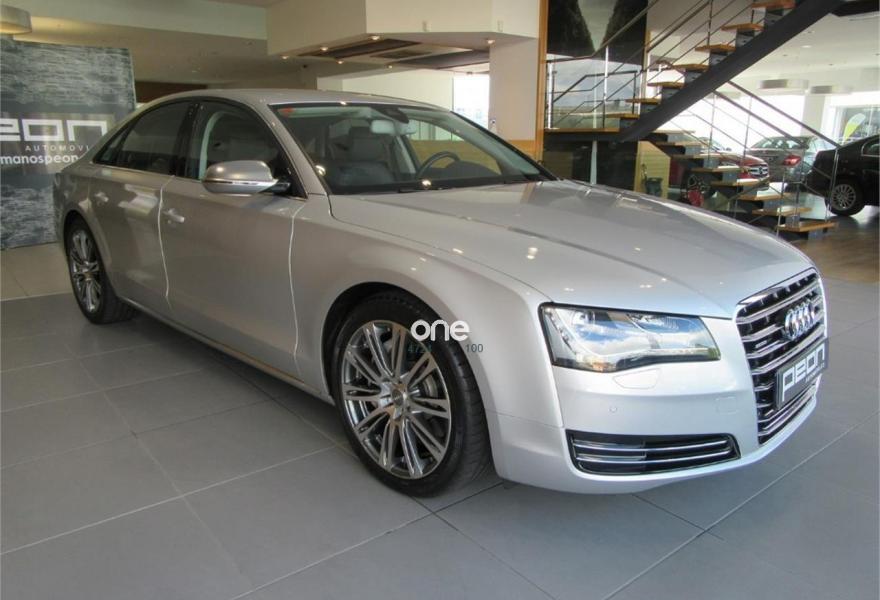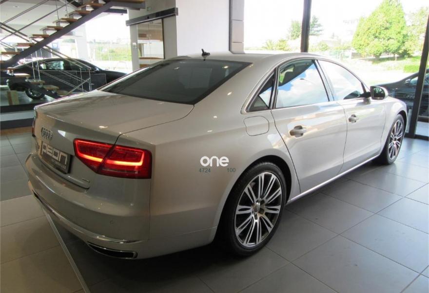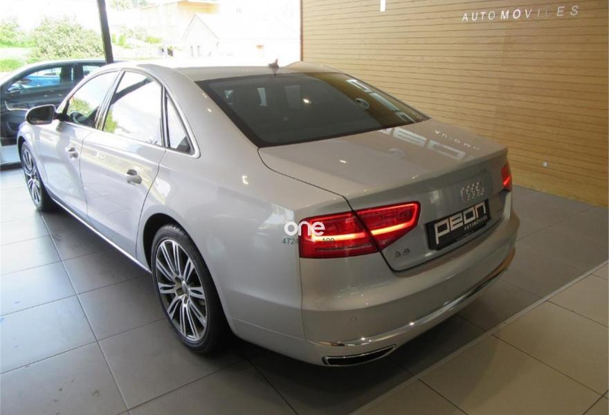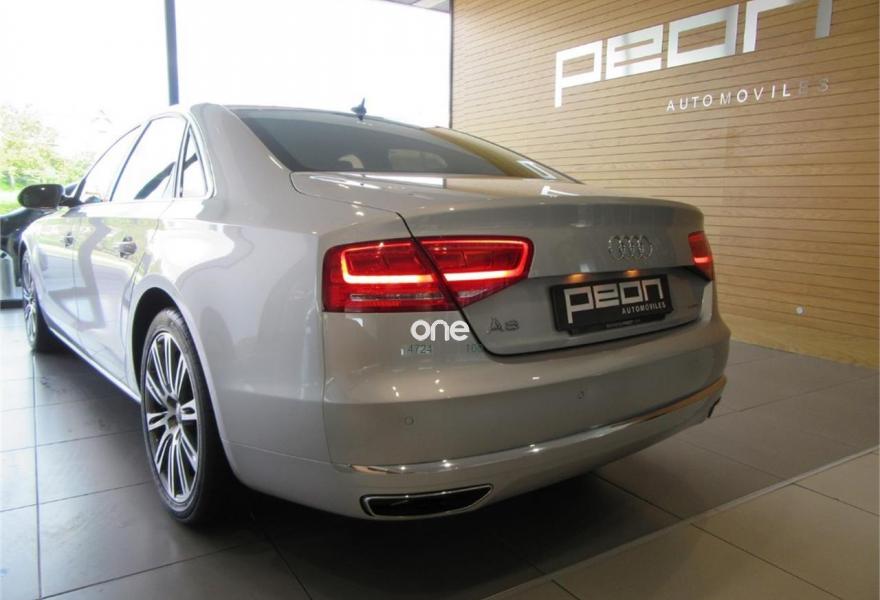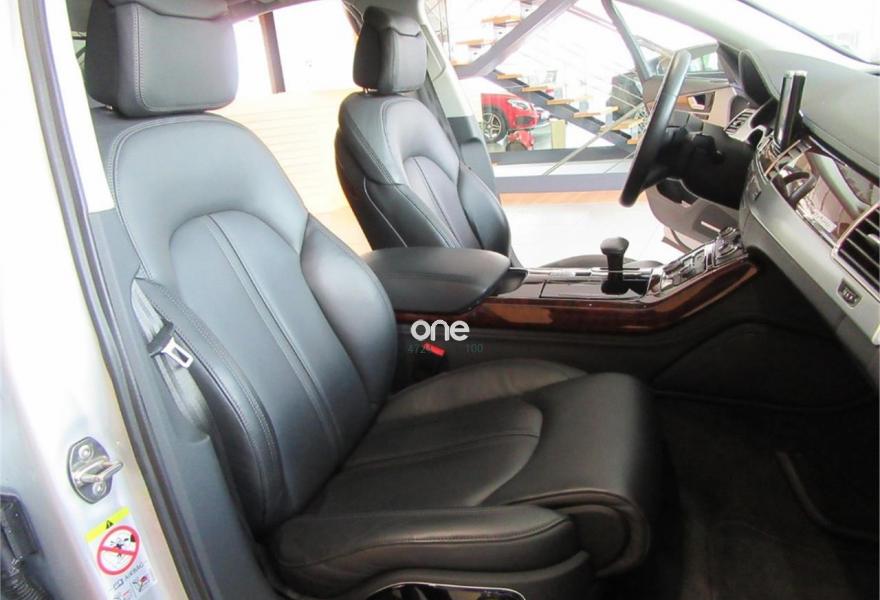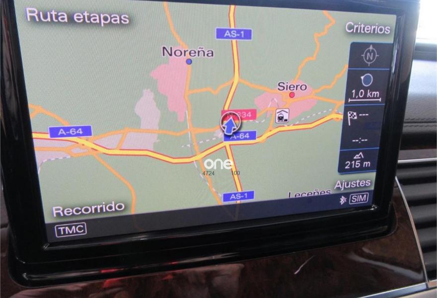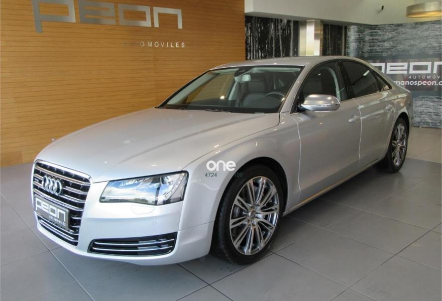 AUDI A8, Diesel, año 2010, 125000 kilómetros, color Gris / Plata metalizado, precio 35990€. Cambio Tiptronic 8v con levas en volante, climatizador automático para las 4 zonas, asientos delanteros Confort con memorias y calefactados, sistema navegación plus MMI, llantas aluminio 20”, volante multifunción, equipo sonido Bose, cortinillas para plazas traseras, lector de tarjetas SD, revestimiento interior en madera, suspensión neumática adaptativa, espejos antideslumbrantes, reposa-brazos trasero confort, teléfono Bluetooth ampliado, reposabrazos central delantero partido, reposabrazos trasero confort, apertura y cierre eléctrico de portón trasero, sistema de apertura de garaje, Auto Hold Assist, etc, etc. IVA deducible.