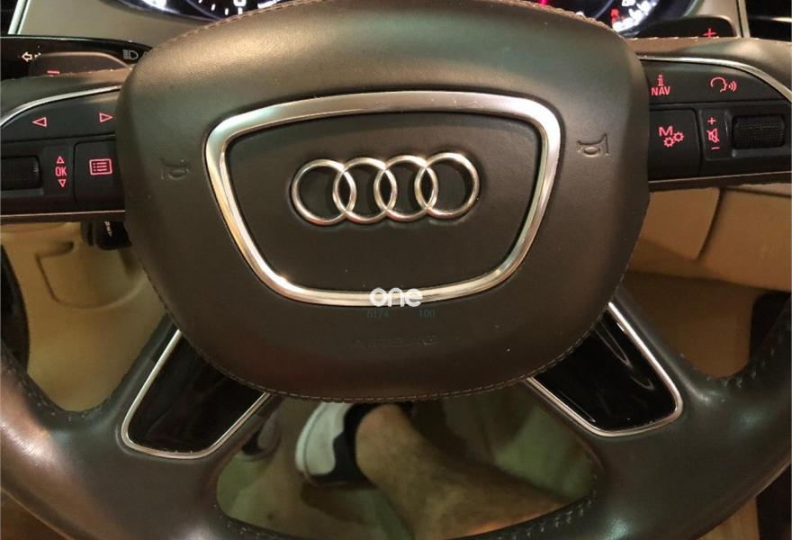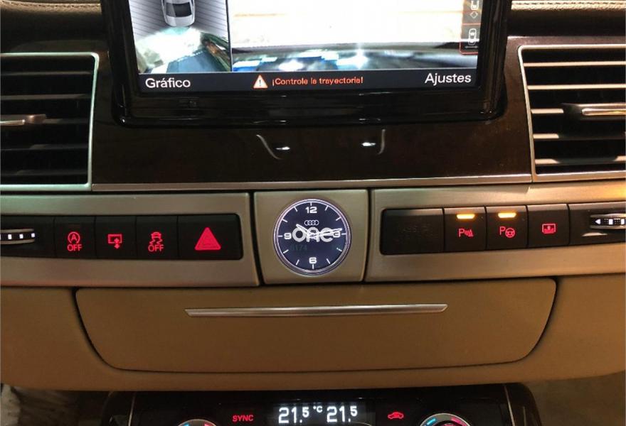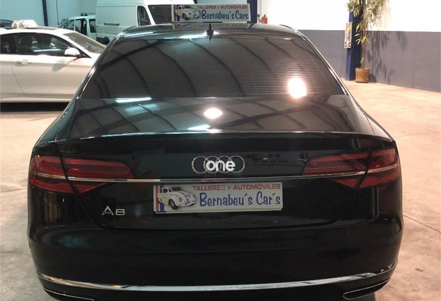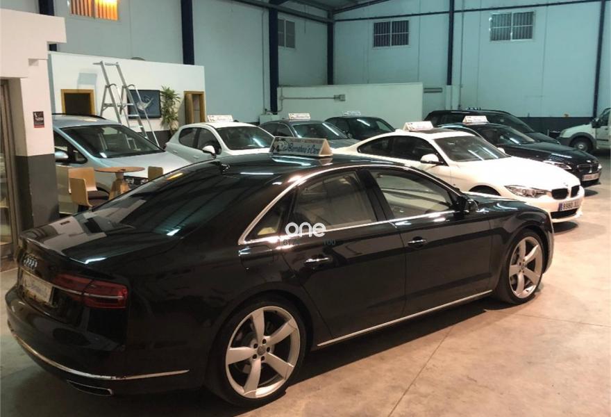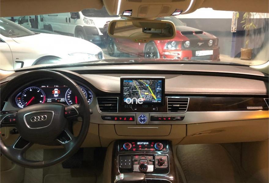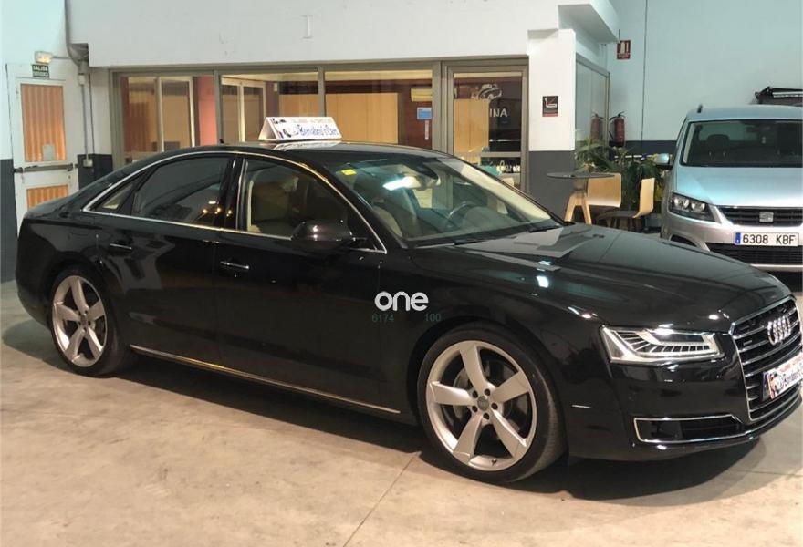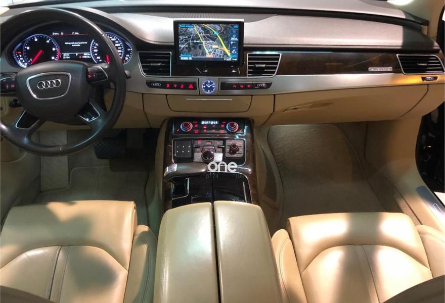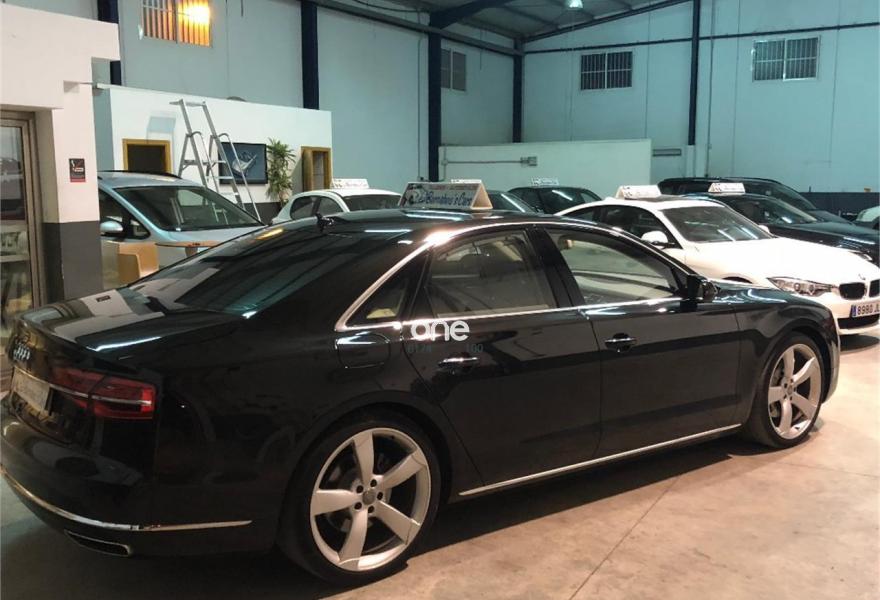 AUDI A8, Diesel, año 2014, 199000 kilómetros, color Negro metalizado, precio 29790€. 4 cámaras de entorno,Audi Park assist,Diferencial trasero deportivo,Paquete comfort,Sistema de aviso de límite de velocidad por reconocimiento de señales,Alfombrillas en colores especiales (Audi exclusive),Asientos con función memoria,Asientos de confort con función memoria,Asientos delanteros y traseros climatizados con función masaje,Tapicería en cuero natural,Cargador de 6 DVD/CD en la guantera,Instalación básica manos libres (Bluetooth) para teléfono móvil,Mando a distancia (HomeLink),Paquete maletero,Rear Seat Entertainment,Sistema de sonido Bang&Olufsen Advanced,Apertura y cierre eléctrico del maletero,Cinturones de seguridad en colores especiales (Audi exclusive),Climatizador automátco de cuatro zonas,Cortinilla eléctrica en luneta posterior,Cortinilla eléctrica en luneta y ventanas laterales posteriores,Cuero Valcona Beige Atlas (Asientos confort),Espejos retrovisores exteriores antideslumbrantes automáticos, plegables eléctricamente y con función de memoria,Faros matrix LED,Iluminación adicional trasera,Iluminación de ambiente,Inserciones inferiores en aluminio cepillado plata,MMI navegación plus,Molduras de entrada delanteras personalizables,Nevera para bebidas (Audi exclusive),Paquete de cuero ampliado,Paquete de llave de confort con apertura por control gestual y maletero eléctrico,Volante de cuero 4 radios calefactablemultifuncional con levas de cambio,Cristales tintados oscuros con laminado doble,Llantas de aleación 9Jx21 diseño de 5 brazos "Estructura" con neumáticos 275/35 R21 (Audi exclusive),Pintura metalizada,Suspensión neumática adaptativa Sport,Cámara de visión trasera,Control de crucero adaptativo,Set de reparación de neumáticos. "ESPECTACULAR UNIDAD AUDI A8 3.0 TDI 258 CV !!