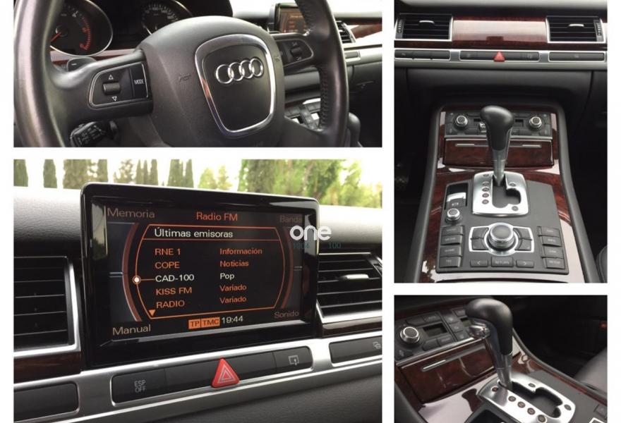 AUDI A8, Diesel, año 2008, 158000 kilómetros, color Azul metalizado, precio 15900€. Audi A8 3.0 TDI Quattro 235cv, año 2008 finales, NACIONAL, con tan solo 158.000km reales con libro de revisiones sellado en servicio oficial, todos los extras posibles como: cambio automático con levas, llantas 20 multiradio con neumáticos nuevos, asientos eléctricos en piel nappa color negro, navegador, teléfono, inserciones de madera y aluminio, faros bixenón, sensores de aparcamiento, lluvia y luz. Coche en perfecto estado tanto de exterior como de interior, se admite cualquier tipo de prueba en su taller de confianza, mejor ver y probar. ((aceptamos su coche como parte de pago y le ofrecemos la posibilidad de financiar hasta el 100% de la compra)). Un saludo y gracias..