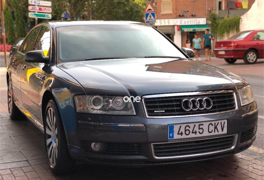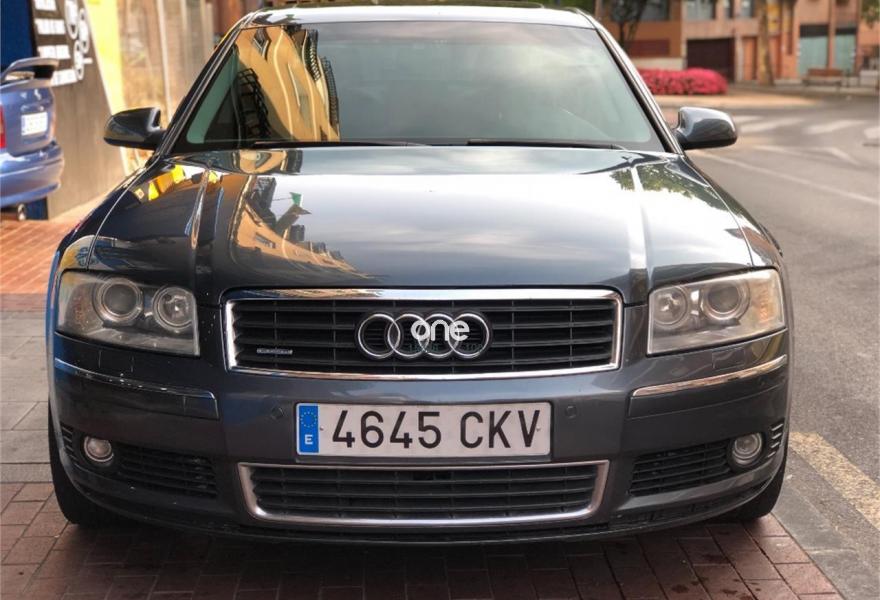AUDI A8, Gasolina, año 2003, 315670 kilómetros, color Gris / Plata metalizado, precio 5500€. FINANCIAMOS CONSULTA SIN COMPROMISO audi a8 4.2 gasolina 335cv es una bala, va super suave el cambio, el motor, UNICOPROPIETARIOS, REVISIONES SELLADAS, recién revisado esta en perfecto estado, 4X4 permanente cortinillas traseras, muy bien cuidado de chapa e interior, km en carretera, pintura original, asientos calefactables, clima en 4 zonas con mandos traseros, control de velocidad navegador, volante eléctrico, techo solar, merece la pena ver aceptamos prueba mecánica, precio fijo con 12 meses de garantía. llévatelo al instante pagando 3200€ de entrada y 270€ al mes en 12 cuotas solo con el DNI..