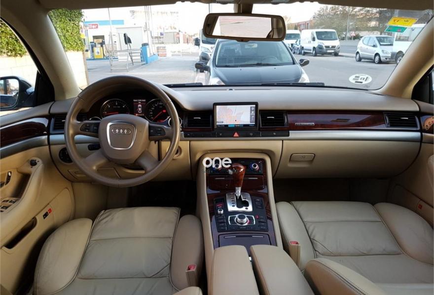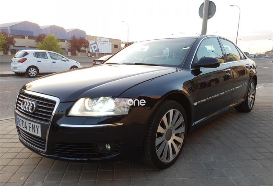 AUDI A8, Diesel, año 2007, 110000 kilómetros, color Negro (Azul Noche) metalizado, precio 17750€. Audi A8 3.0Tdi 232Cv DPF Triptronic Quattro V6, 110000Km, Libro de revisiones al día, Faros Bi-Xenón Plus con luz adaptativa, Asientos Cuero deportivos eléctricos confort, Navegador GPS MMI, Control de velocidad, Dirección asistida variable Servotronic, Acceso y arranque sin llave, Levas del cambio en el volante, Espejos retrovisores ext. antideslumbrantes aut. y plegables eléctricamente, Almohada para asientos delanteros, Sensores de luz, lluvia, Climatizador bi-zona, Volante deportivo en cuero con mandos, Suspensión neumática adaptativa, Audi Parking APS del/tras, Luz marcha diurna, Climatizador de confort de cuatro zonas,Indicador de neumático deshinchado, Paquete maletero, Portón eléctrico, Paquete portaobjetos, 4 elevalunas eléctricas, teléfono con SIM, Llantas, vehículo nacional.{[n]}{[n]}Garantía Mecánica Incl, {[n]}{[n]}Tasamos su vehículo como parte de pago.{[n]}{[n]}Sábado cerrado, abrimos los Domingos de 11h a 14h. {[n]}{[n]}{[n]}{[n]}Vehículo nacional.{[n]}{[n]}Garantía mecánica de 12 meses Incl.{[n]}{[n]}Informe.
