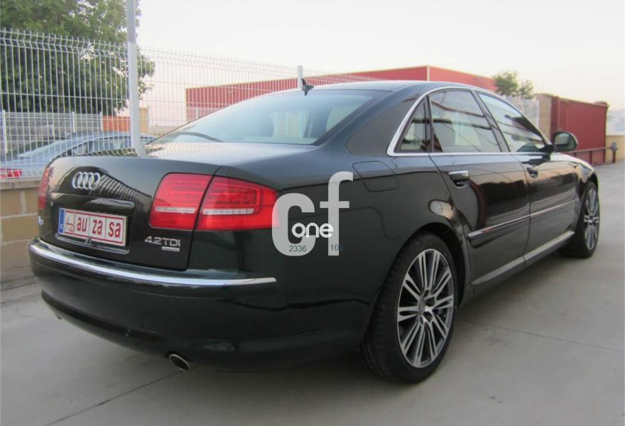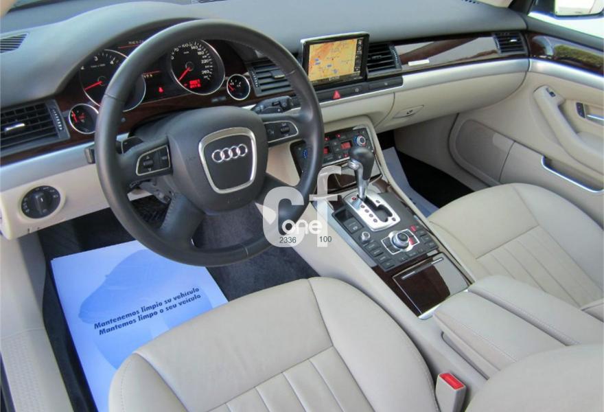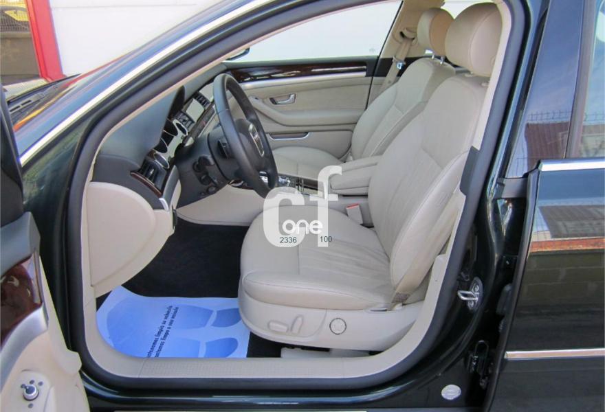 AUDI A8, Diesel, año 2009, 84000 kilómetros, color Verde (VERDE OSCURO METALIZADO) metalizado, precio 27900€. Audi Music interface + Intercambiador de CDs,Apoyacabezas confort trasero,Cuero Valcona Beige Cardomomo (Salpicadero Beige Tara /Beige Cdmo.),Paquete Sport,Saco portaesquís,Tapicería en cuero Valcona,MMI navegación plus,Preinstalación de teléfono móvil con kit manos libres (2ª generación),Radio digital DAB,Teléfono Audi Bluetooth GSM con auricular inalámbrico en apoyabrazos central delantero de confort,Luz adaptativa "adaptive light",Paquete de cuero ampliado 1,Sistema de alarma antirrobo con protección contra remolcado,Sistema de control de presión de los neumáticos,Sistema de control por voz,Volante deportivo de 3 radios multifuncional tiptronic,Llantas de aleación 8,5J x 19 diseño de 12 radios brillante monocolor con neumáticos 255/40 R 19,Pintura metalizada,Pintura efecto perla,Audi parking system Plus,Fijación para asientos infantiles ISOFIX y desactivador Airbag del acompañante. TOTALMENTE NUEVO.