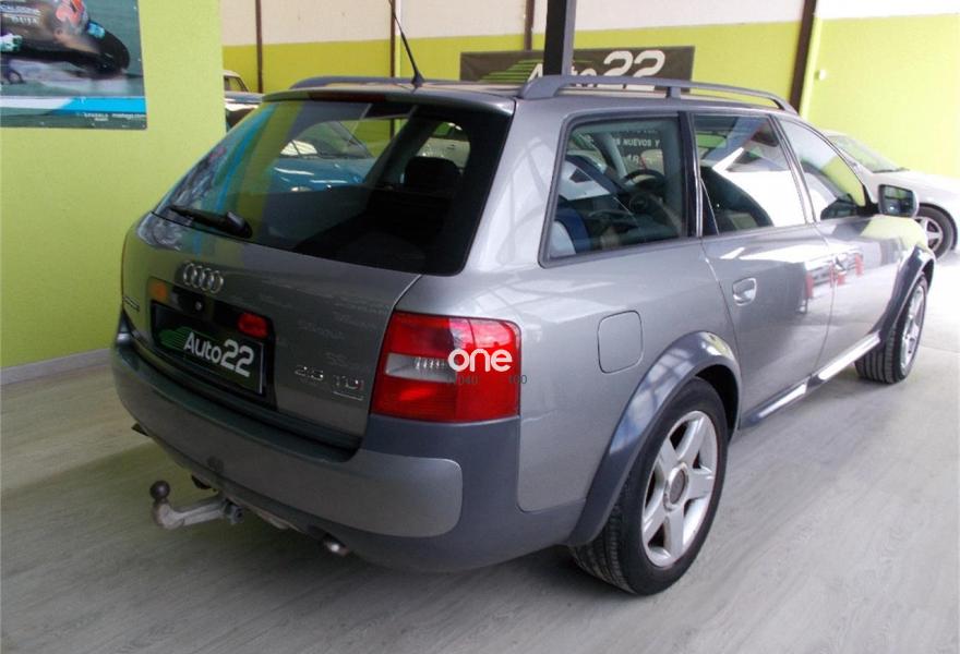 AUDI Allroad Quattro, Diesel, año 2001, 330000 kilómetros, color Gris / Plata metalizado, precio 4000€. Apoyabrazos central delantero,Asientos calefactables delanteros,Asientos delanteros regulación eléctrica,Instalación teléfono fijo GSM Nokia 6091,Calefacción/ventilación programable,Retrovisor int antideslumbramiento auto,Tempomat,Gancho de rmolque con bola desmontable,Pintura metalizada,Fijación 2 asientos para niños Isofix,Interruptor desactivación airbag pasaj.. VEHICULO COMPLETAMENTE REVISADO CON ITV RECIEN PASADA Y RUEDAS DELANTERAS NUEVAS!!