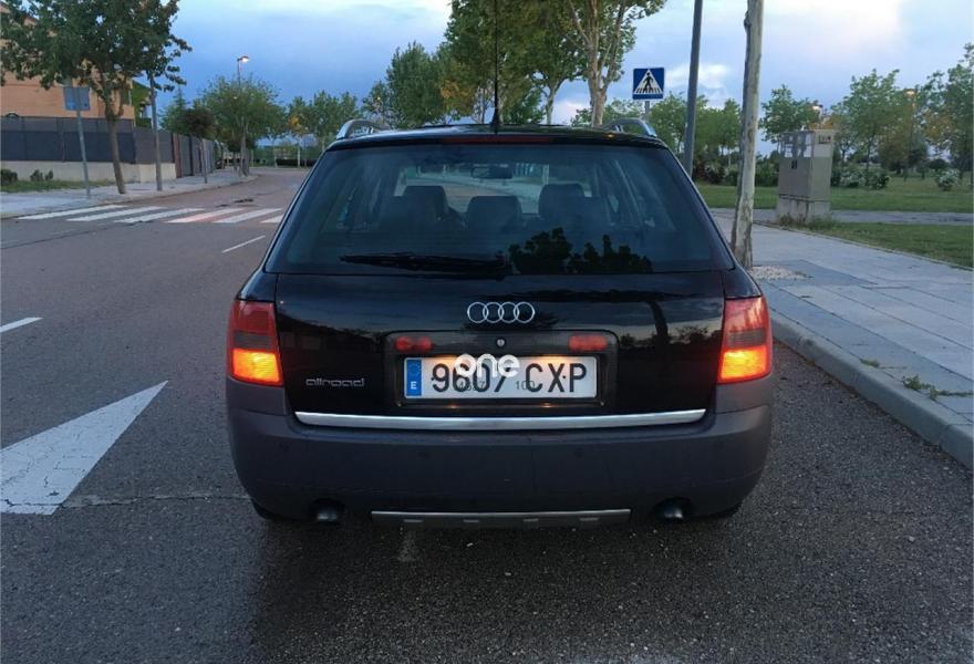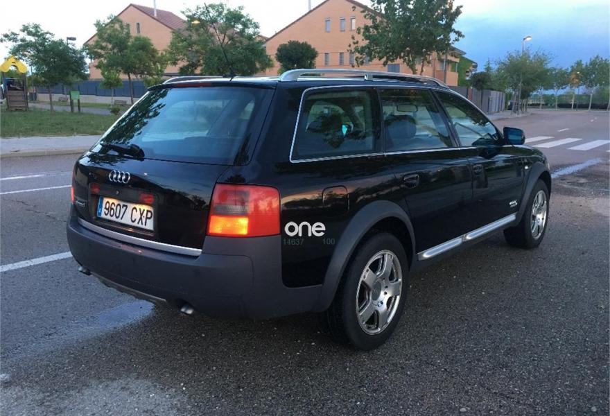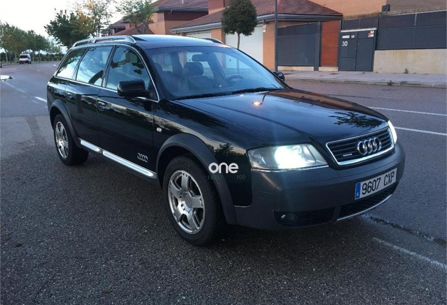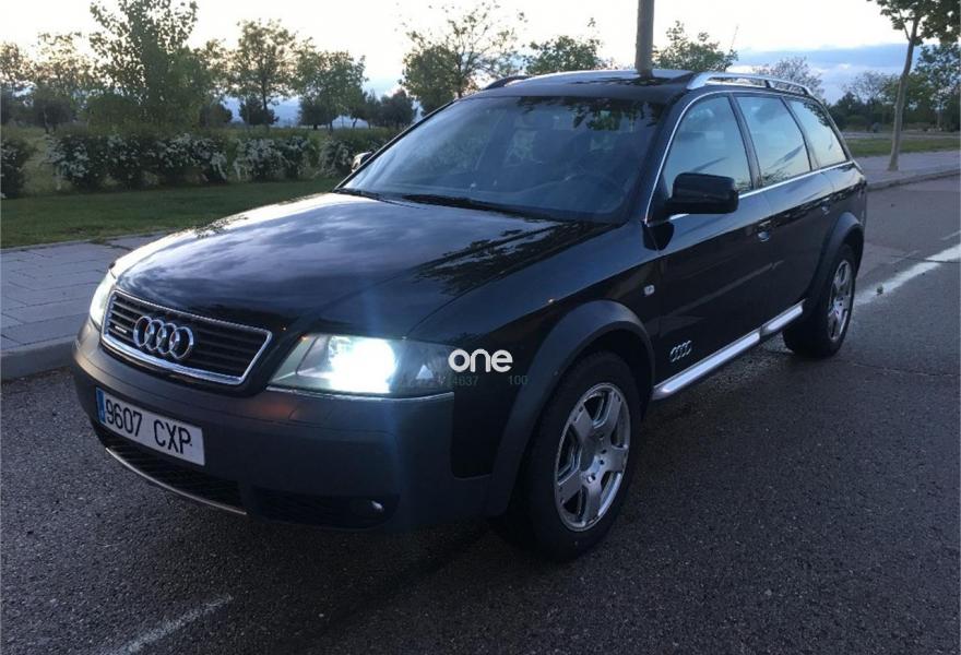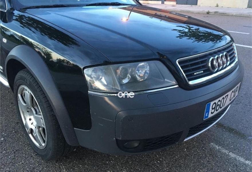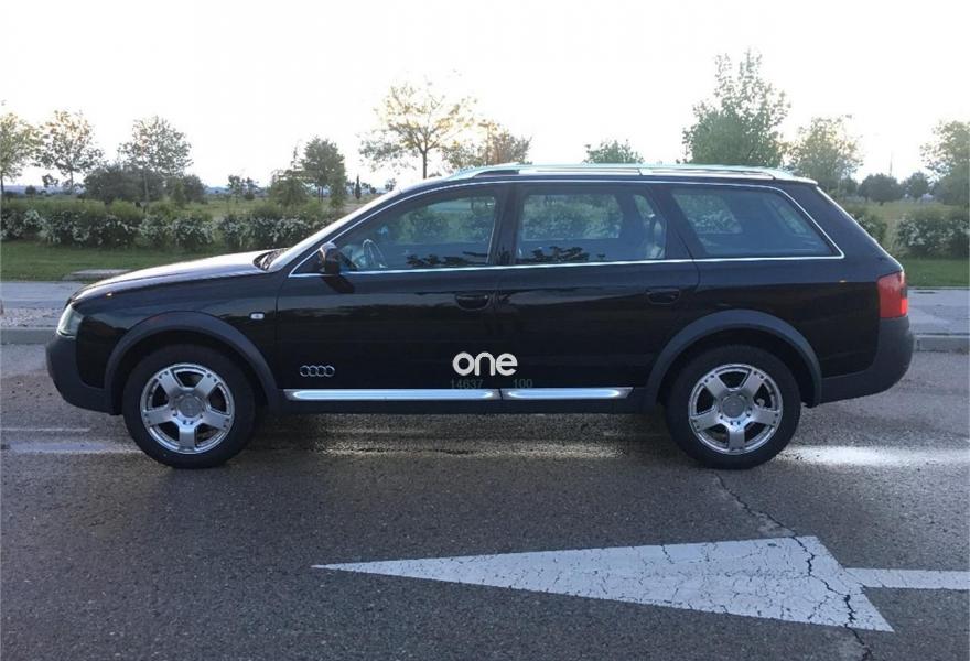 AUDI Allroad Quattro, Diesel, año 2001, 277000 kilómetros, color Negro metalizado, precio 4500€. Apoyabrazos central delantero,Asie. del. regul. eléc.+ memoria (2),Asient. del. reg. eléct.+memoria cond.,Asientos calefactables delant. y tras.,Asientos delanteros Recaro,Asientos delanteros regulación eléctrica,Saco portaesquíes,Intercambiador de CD,Preinstalación teléfono+kit manos libres,Sistema de Navegación Plus BOSE sin TV,Calefac./vent. progra. mando a distan.,Calefacción/ventilación programable,Cortinilla manual luneta posterior,Cortinillas manuales posterior+laterales,Dirección asistida variable Servotronic,Faros de Xenón,Revestimento del techo en Alcantara,Sin inscripción trasera cilindrada,Techo solar eléctrico de cristal,Tempomat,Volante deportivo de 3 radios tiptronic,Gancho de rmolque con bola desmontable,Llantas de aleación 7.5x17 radios dobles,Paquete exterior Aluminio,Interruptor desactivación airbag pasaj.,Sistema de aparcamiento acústico (APS). Vehículo en buen estado en general, bien cuidado y muy completo de extras, asientos RECARO, navi plus, control de velocidad, techo, asientos calefactables, tiptronic + volante, rejillas de cortesia en plazas traseras y maletero, techo de alcántara, llantas doble radio, calefacción estacionaria con mando a distancia, bluetooth, toma USB/entrada aux, SD, etc. ITV al día. Dos llaves con mando a distancia. Historial de mantenimiento exhaustivo con facturas. .