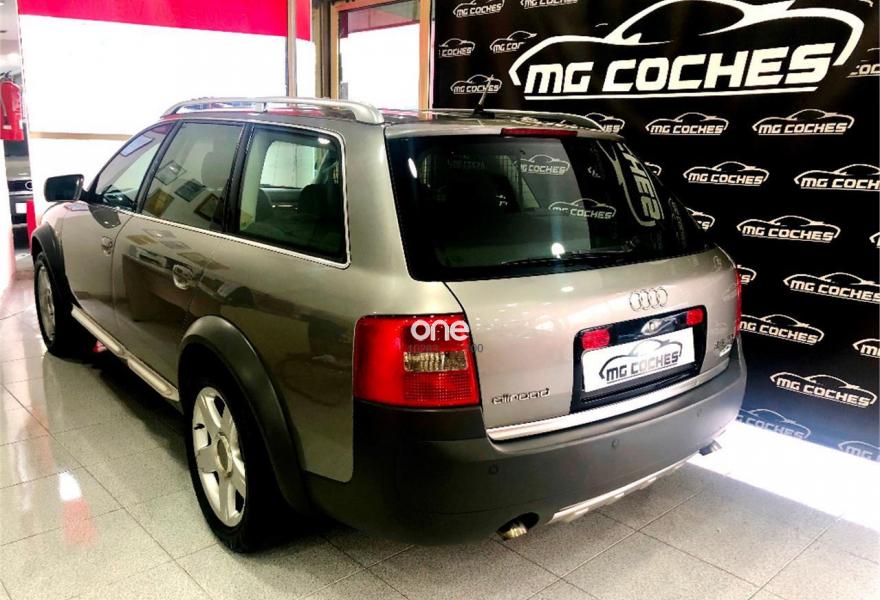 AUDI Allroad Quattro, Diesel, año 2003, 292000 kilómetros, color Beige metalizado, precio 6890€. Pomo cambio en madera,Apoyabrazos central delantero,Asientos calefactables delanteros,Asientos delanteros Recaro,Asientos delanteros regulación eléctrica,Inserc. madera raíz nogal "Naturaleza",Tapicería en Cuero "Cricket",Asient. del. reg. eléct.+memoria cond.,Instalación teléfono fijo GSM Nokia 6091,Intercambiador de CD,Preinstalación teléfono+kit manos libres,Sistema de Navegación,Cortinilla manual luneta posterior,Cortinillas manuales posterior+laterales,Cuero Criket gris/negro,Parachoques pintados,Retrovisor int antideslumbramiento auto,Volante multifuncional para tiptronic,Gancho de remolque con bola desmontable,Cristales dobles térmicos anti-infrarojo,Beige alpaca metalizado,Llantas de aleación 7.5x17 radios dobles,Fijación ISOFIX,Interruptor desactivación airbag pasaj.,Sistema de aparcamiento acústico (APS). climatizador dual, 4 elevalunas electricos, volante y pantalla multifuncion, control crucero y limitador de velocidad, red cubre objetos....
