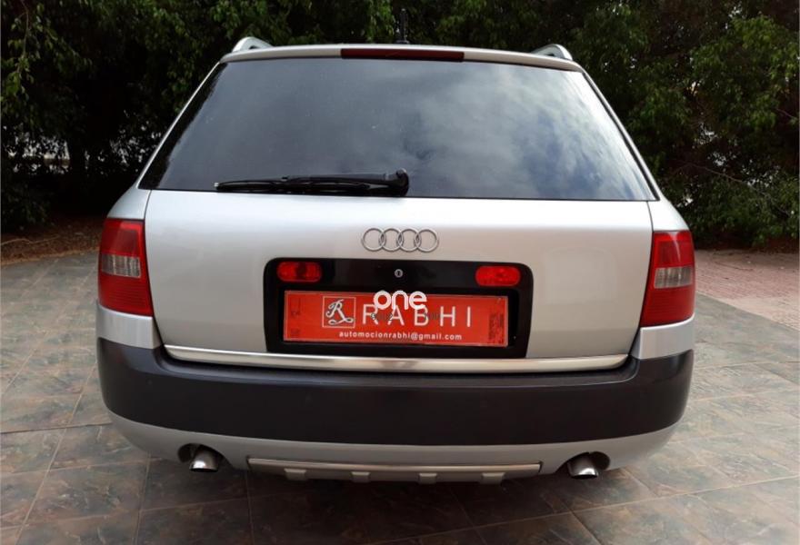 AUDI Allroad Quattro, Diesel, año 2004, 180000 kilómetros, color Gris / Plata metalizado, precio 6000€. Estupendo Audi A6 Allroad. Un vehículo full equipe que monta un motor 2.5TDI con 180cv y una caja de cambios automática secuencial. Tiene tracción quattro, suspensión neumática, pintura metalizada, accesorios cromados, faros de xenón, asistente al aparcamiento delantero y trasero, ordenador de abordo inteligente, equipo multimedia con pantalla de 7 pulgadas, navegador, GPS integrado, conexión bluetooth con manos libres, conexión auxiliar, USB y memory card, guantera climatizada, preinstalación para teléfono audi, climatizador bi-zona, inserciones en madera pulida, tapicería en piel de doble color, asientos calefactables delanteros y traseros, asientos eléctricos delanteros, elevalunas a las 4, cubre maleteros avanzado, red de separación oculta y muchos extras más. *Se entrega transeferido, con una revisión mecánica completa y con 1 año de garantía exclusiva. .