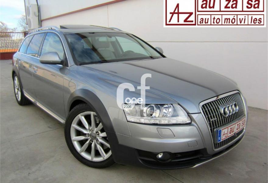 AUDI Allroad Quattro, Diesel, año 2010, 65000 kilómetros, color Gris / Plata (GRIS PLOMO) metalizado, precio 28700€. Apoyabrazos central delantero,Asientos delanteros con regulación eléctrica,Inserciones en aluminio Trigón,Saco portaesquís,Tapicería en cuero Valcona,Instalación básica manos libres (Bluetooth) para teléfono móvil,Intercambiador de CD y reproductor de DVD,MMI Navigation plus,Preinstalación de teléfono móvil con kit manos libres (Bluetooth) en apoyabrazos central delantero,Radio digital DAB,Teléfono Audi Bluetooth GSM con auricular inalámbrico en el apoyabrazos central delantero,Apoyabrazo puertas en cuero,Cierre servoasistido de las puertas,Climatizador de confort automático plus,Control automático de la velocidad (Tempomat),Techo corredizo eléctrico de cristal,Sistema de información del conductor (FIS) con pantalla de alta resolución en color,Set de fijación para el maletero,Retrovisor interior y exteriores antideslumbrantes automáticos, los exteriores plegables eléctricamente y con función memoria,Retrovisor interior con regulación antideslumbramiento automática,Portón del maletero de accionamiento automático,Paquete portaobjetos,Paquete exterior aluminio,Faros de xenón plus,Cuero Valcona Gris Luz - Asientos Normales (Moqueta Velours),Cristales tintados oscuros,Llantas de aleación 8Jx18 diseño de 10 radios con neumáticos todoterreno 245/45 R18 con protección especial para los bajos del motor,Pintura metalizada,Sin inscripción trasera de modelo y cilindrada,Audi parking system plus,Fijación para asientos infantiles ISOFIX y desactivador del airbag del acompañante. P.V.P NUEVO: 77.140 €