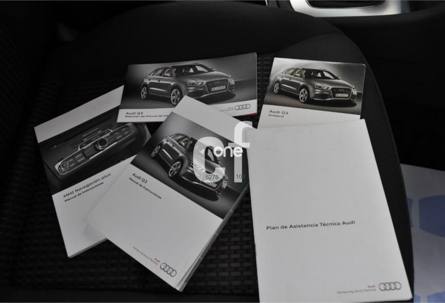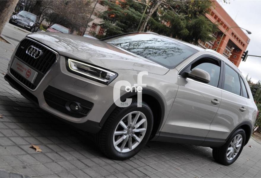 AUDI Q3, Diesel, año 2012, 95000 kilómetros, color Beige metalizado, precio 24900€. Audi music interface online,Sistema de información del conductor (FIS) con pantalla de alta resolución en color,Audi music interface,Instalación manos libres (Bluetooth) para teléfono móvil,MMI navegacion plus 3G,Teléfono Audi Bluetooth GSM online,Alarma antirobo,Faros de xenón plus,Faros inteligentes "smart beam",Lavafaros,Paquete de iluminación interior LED,Tela Sprint/Cuero Negro/Gris Jet,Sistema de control de presión de los neumáticos,Volante multifuncional de tres radios en diseño "Q" con levas para el cambio S tronic,Acoustic parking sensor,Fijación para tres asientos infantiles ISOFIX y desactivador del airbag del acompañante. Cambio S Tronic