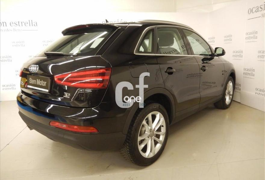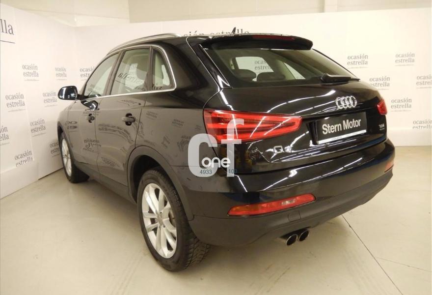 AUDI Q3, Diesel, año 2013, 62400 kilómetros, color Negro metalizado, precio 29500€. Tapicería de cuero Nappa color negro,Faros de xenón plus,Techo panorámico de cristal,Negro Phantom (efecto perla),Llantas de aleación 7J x 18 diseño de 5 radios dobles con neumáticos 235/50 R 18,Lavafaros,MMI navegacion plus 3G,Asientos delanteros calefactables,Audi parking system delantero y trasero,Retrovisores exteriores calefactables y plegables eléctricamente,Audi drive select. Vehículo completamente equipado, en perfecto estado y revisado por nuestro concesionario MERCEDES-BENZ.