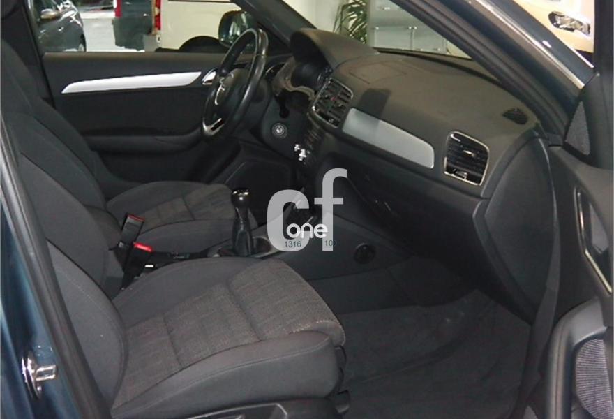 AUDI Q3, Diesel, año 2015, 59100 kilómetros, color Azul metalizado, precio 25990€. Tracción delantera 4x2.Llantas.Xenon.Sensor de luces y parking trasero y delantero.Techo solar.Mandos en volante.Manos libres.Regulador/limitador de velocidad.Navegador.Climatizador Bizona.Freno de mano eléctrico.Elevalunas delanteros/traseros eléctrico.Retrovisores eléctrico.Asientos eléctricos conductor/acompañante.Precio incluye 1 año de garantía y transferencia..