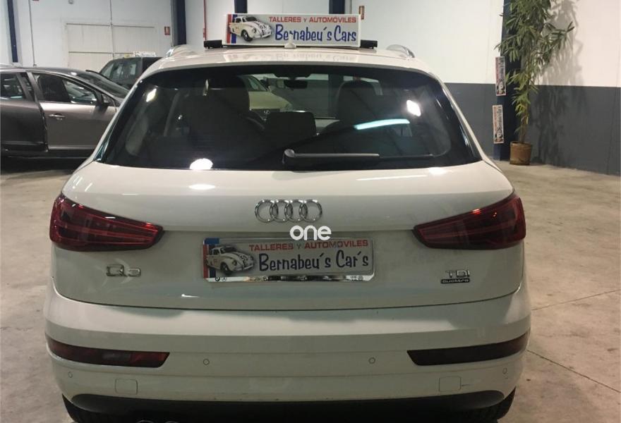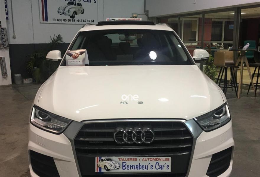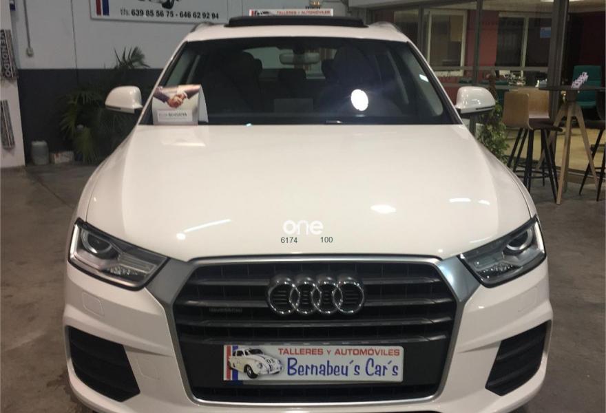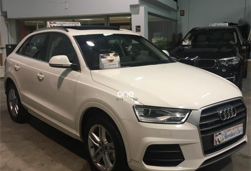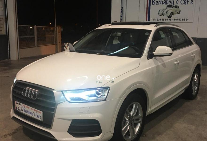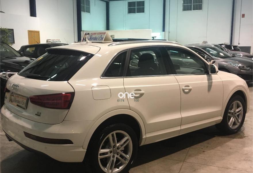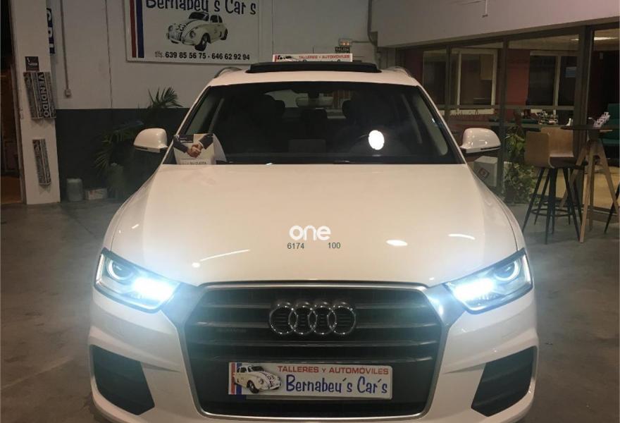 AUDI Q3, Diesel, año 2016, 89000 kilómetros, color Blanco metalizado, precio 26990€. Paquete Black Line,Asiento del conductor con regulación eléctrica,Asientos delanteros con regulación eléctrica,Audi music interface,MMI navegacion plus 3G,Faros inteligentes "smart beam",Faros de LED,Instalación manos libres (Bluetooth) para teléfono móvil,Lámina adhesiva quattro,Lavafaros,Paquete deportivo S line,Paquete exterior S line,Techo panorámico de cristal,Tarjeta SD,Tela Energy Negro,Pintura metalizada,Asistente de aparcamiento park assist,Audi parking system plus,Retrovisor interior con regulación antideslumbramiento automática. "ESPECTACULAR SUV"