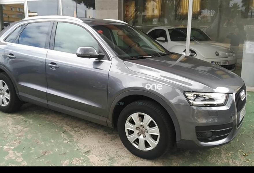 AUDI Q3, Diesel, año 2013, 112000 kilómetros, color Gris / Plata metalizado, precio 17900€. Instalación manos libres (Bluetooth) para teléfono móvil,Cristales tintados oscuros,Pintura metalizada,Asistente de aparcamiento park assist,Faros de xenón plus.