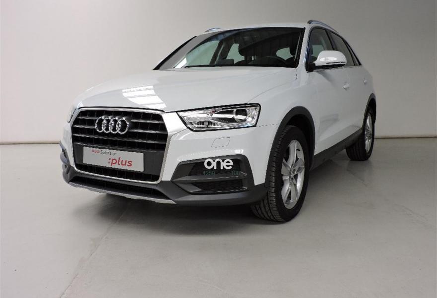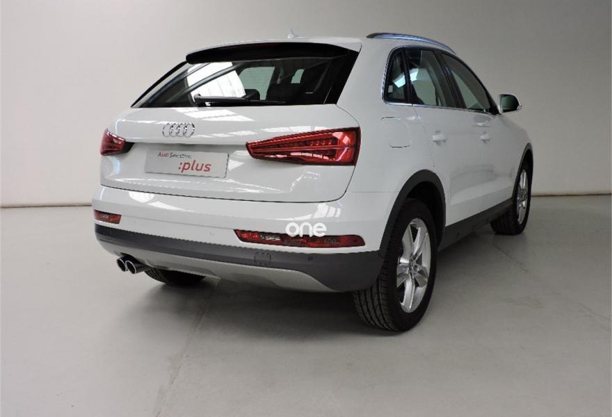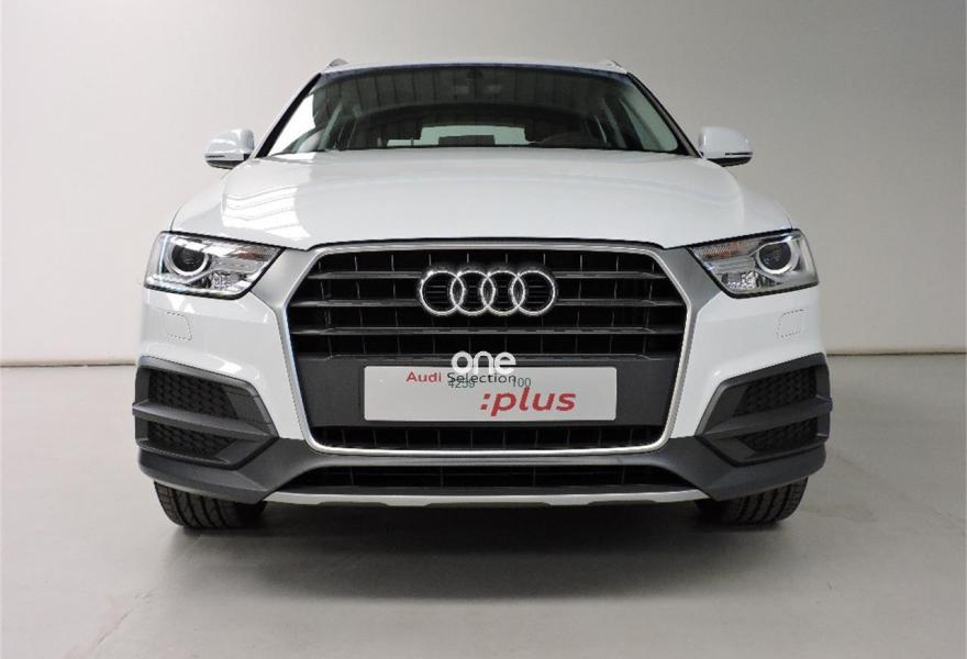 AUDI Q3, Diesel, año 2017, 12280 kilómetros, color Blanco metalizado, precio 24575€. Blanco Glaciar (metalizado),Pintura metalizada,Tela Inspiration Negro,Volante multifuncional de cuatro radios con levas para el cambio S tronic,MMI navegacion plus 3G,Llantas de aleación 7J x 18 diseño de 5 brazos dobles con neumáticos 235/50 R 18,Sin inscripción trasera de modelo y cilindrada,Sin inscripción trasera de tecnología,Audi parking system plus,Retrovisores exteriores calefactables y plegables eléctricamente y con función antideslumbrante automática,Lavafaros. El precio incluye un descuento de 2.300€ por financiar. Consultar condiciones.