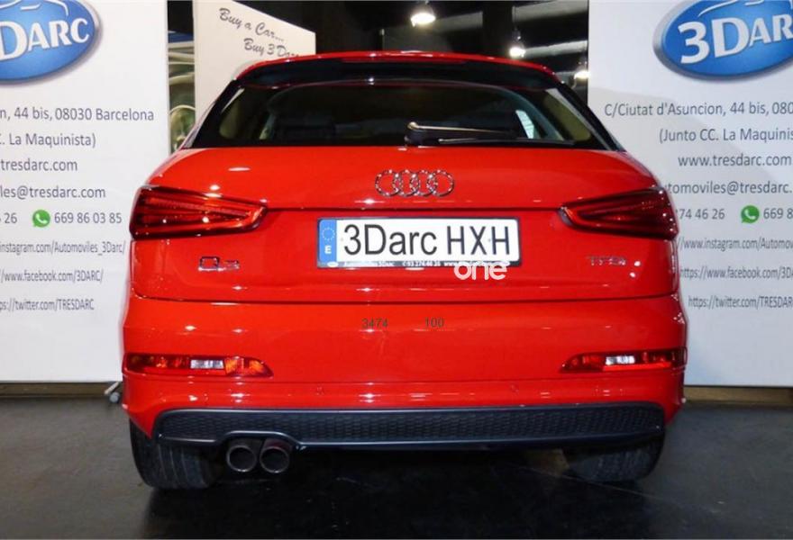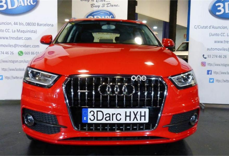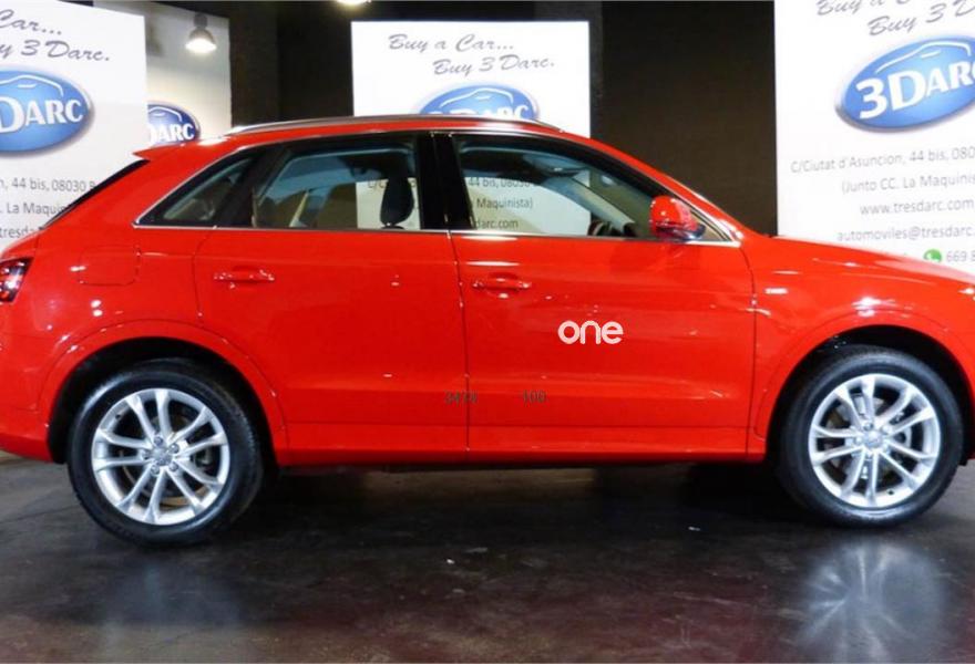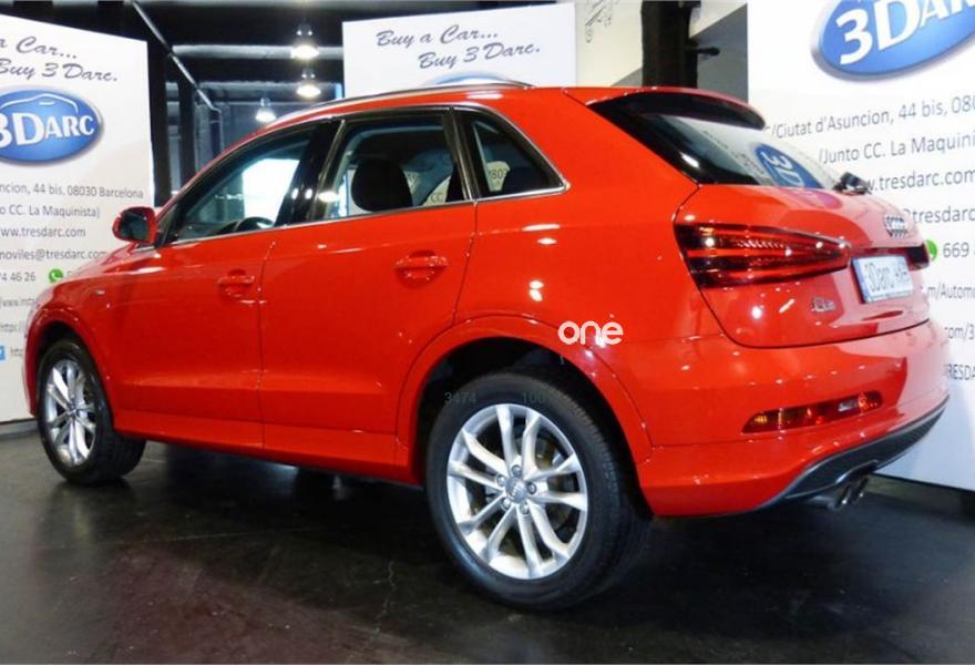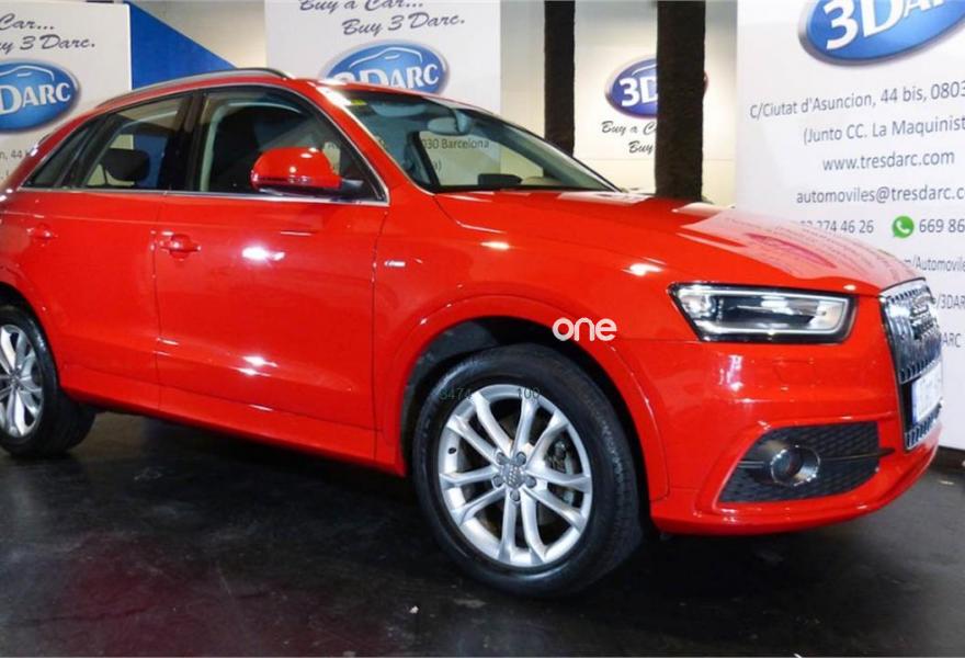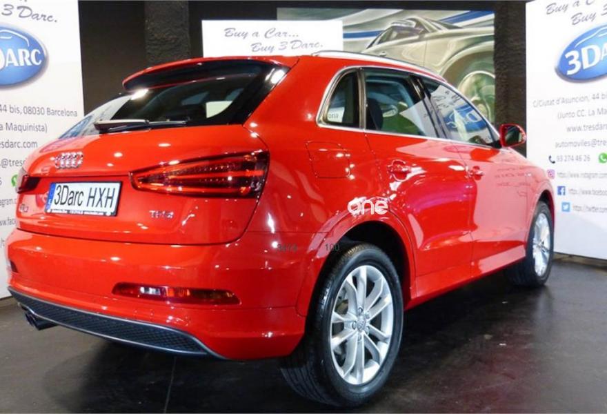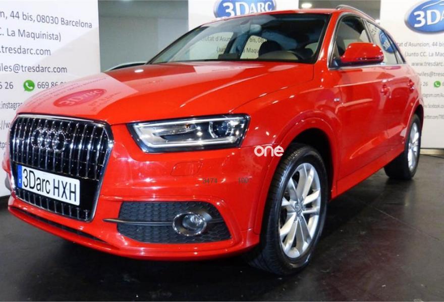 AUDI Q3, Gasolina, año 2014, 64000 kilómetros, color Rojo , precio 22900€. Audi music interface online,Paquete portaobjetos y maletero,Alfombrilla reversible de maletero,Pomo palanca de cambio manual en aluminio,Equipo de sonido BOSE Surround,Instalación manos libres (Bluetooth) para teléfono móvil,Faros inteligentes "smart beam",Paquete deportivo S line,Pintura completa,Pintura personalizada Audi exclusive.
