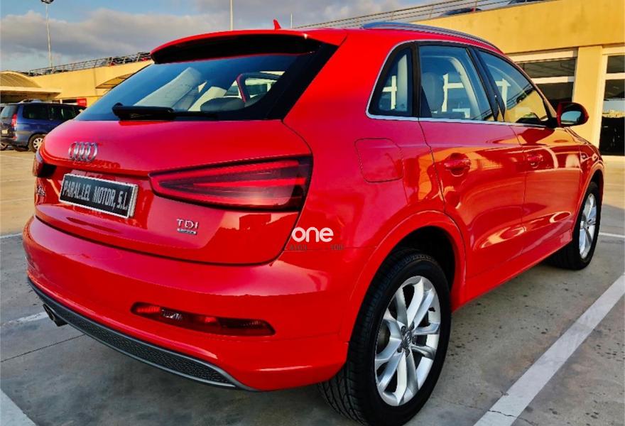 AUDI Q3, Diesel, año 2014, 59000 kilómetros, color Rojo metalizado, precio 25900€. Audi music interface,Instalación manos libres (Bluetooth) para teléfono móvil,Radio Digital DAB,Faros de xenón plus,Lavafaros,Paquete deportivo S line,Paquete exterior S line,Tela Energy Gris Titanio,Llantas de aleación 7J x 18 diseño de 5 brazos dobles con neumáticos 235/50 R 18,Pintura metalizada,Acoustic parking sensor,Audi parking system delantero y trasero,Fijación para tres asientos infantiles ISOFIX y desactivador del airbag del acompañante. * PRECIO DEFINITIVO NO VINCULADO A FINANCIACIÓN.